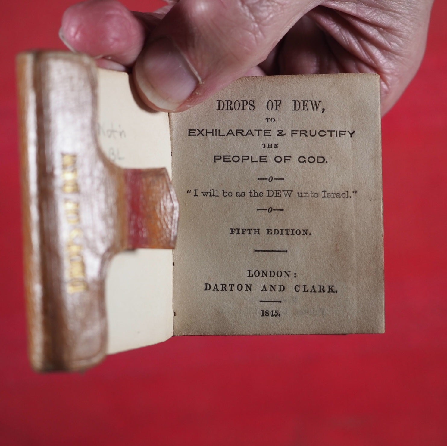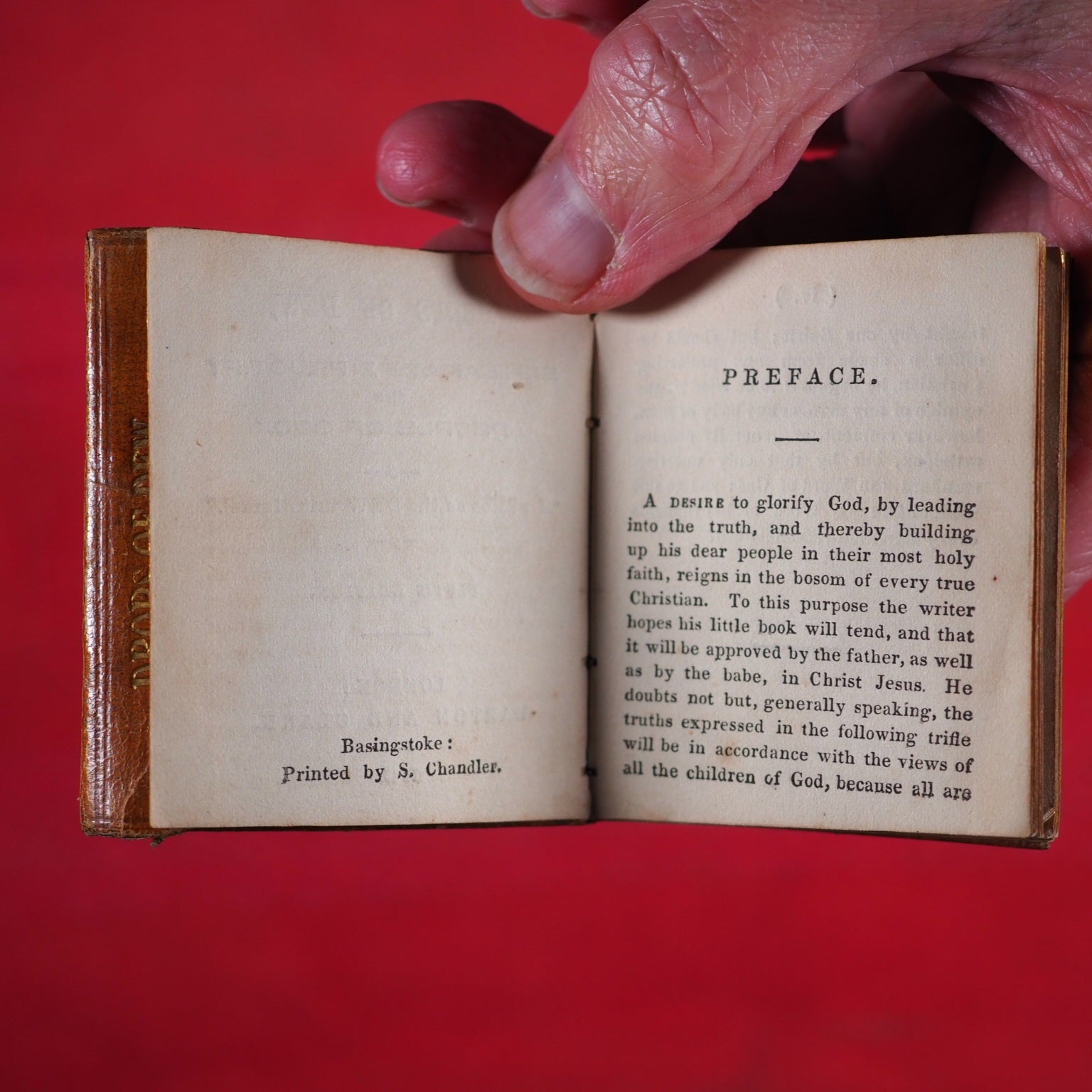 128 printed pages. Printed by S. Chandler, Basingstoke. Original pale yellow endpapers. All edges gilt. 55 x 68 mm. Publisher's wallet style binding in light tan roan. Title blocked in gilt above flap. Tiny tear on upper hinge near head of spine. Some fading and gentle rubbing. An apparently unrecorded Victorian selection of New Testament passages seemingly intended to provide comfort to young readers. All editions entirely unrecorded on usual databases. Darton & Clark were successors to William Darton and Son, a partnership between John Maw Darton and Samuel Clark. They were active 1836-1845 and succeeded by Darton and Co. Not in Bondy, nor Darton, nor Spielmann, nor Welsh. WorldCat locates zero copies worldwide. Seller Inventory # 5444