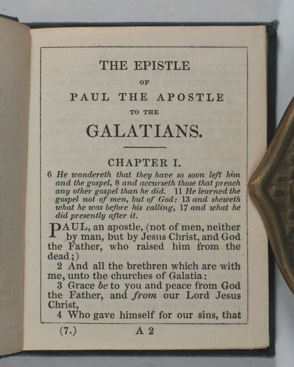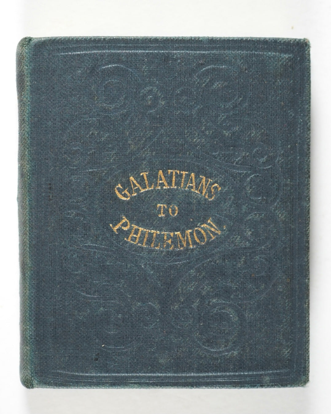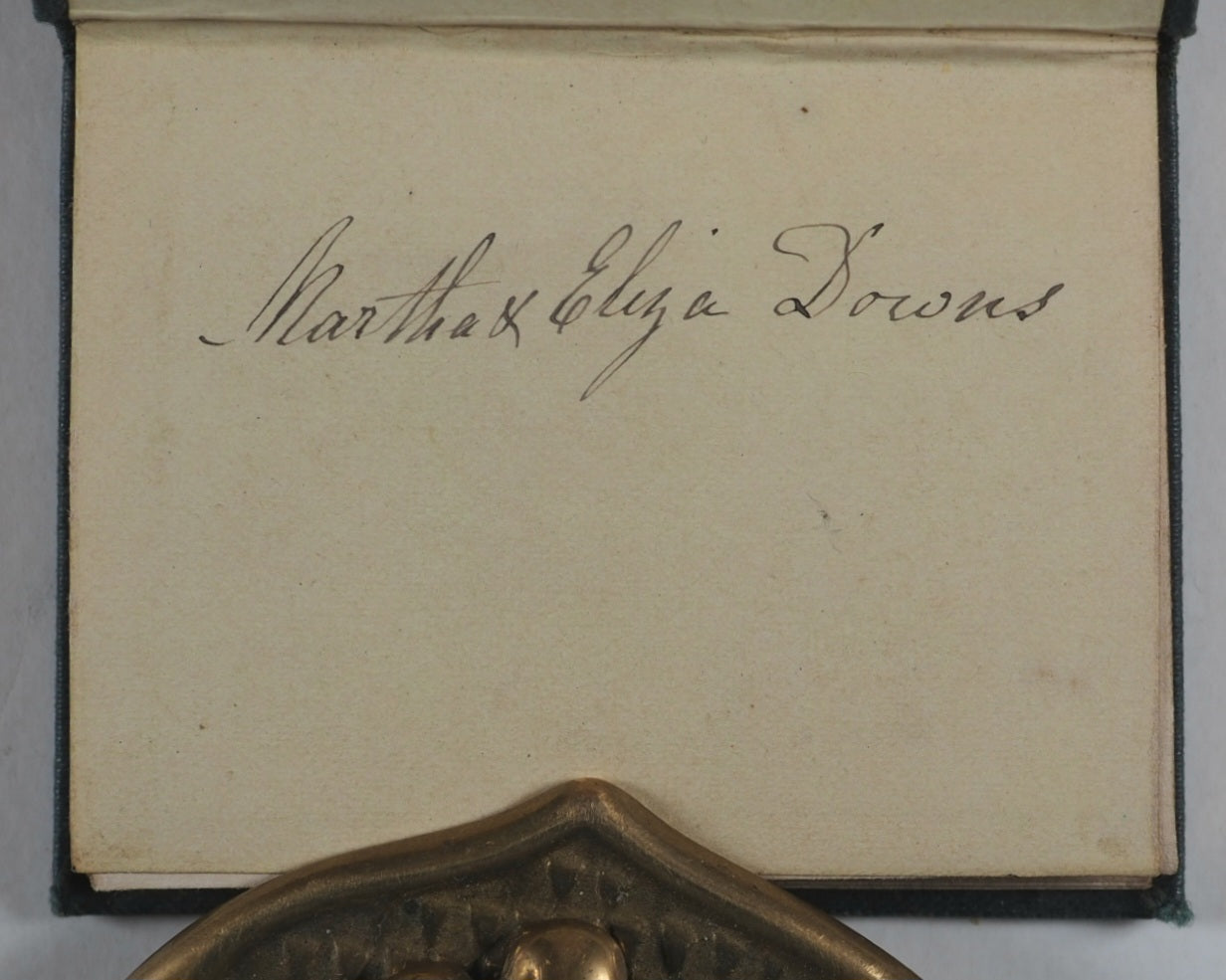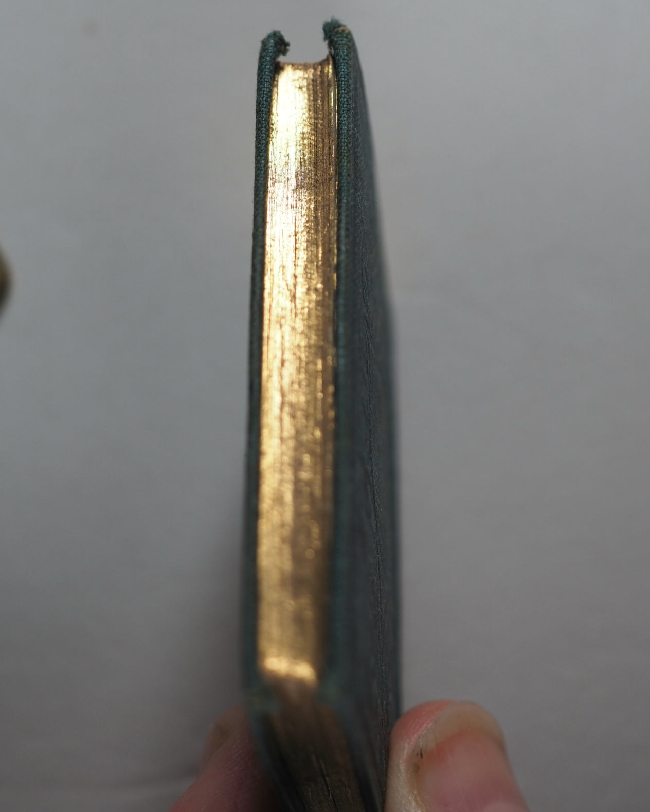 71 unnumbered leaves. All edges gilt. Original pale yellow endpapers. Contemporary ink ownership inscription on front free endpaper, undated. Provenance: Martha & Eliza Downs. Inner hinge split but still holding. 58 x 70 mm. Original blue embossed cloth; gilt titling on upper cover; spine undecorated. Slight wear. Welsh, 812 (one copy identified in 1957 Olschki catalogue). OCLC, 1023521098. WorldCat locates two copies worldwide (University Libraries of Oxford, and Manchester).