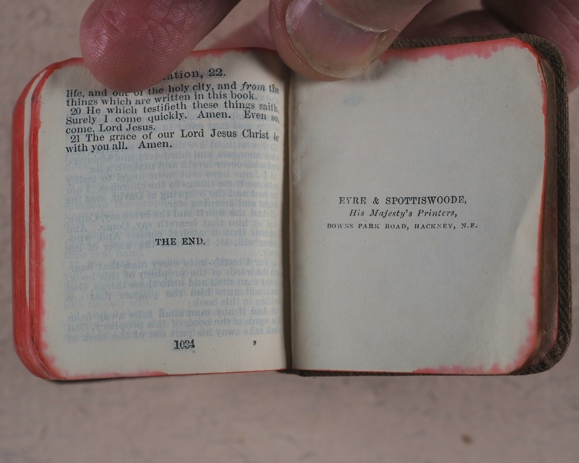 ![Load image into Gallery viewer, New Testament of the Lord & Saviour Jesus Christ. Translated out of original Greek & with former translations diligentlycompared & revised by H.M.'s special command. Eyre & Spottiswoode Ltd. 33 Paternoster Row E.C. London, Edinburgh & New York. [1914].](http://miniaturebooks.co.uk/cdn/shop/files/P3062827_110x110@2x.jpg?v=1741273223)