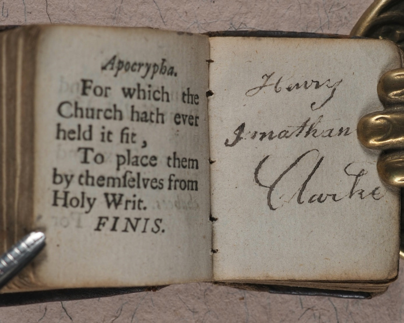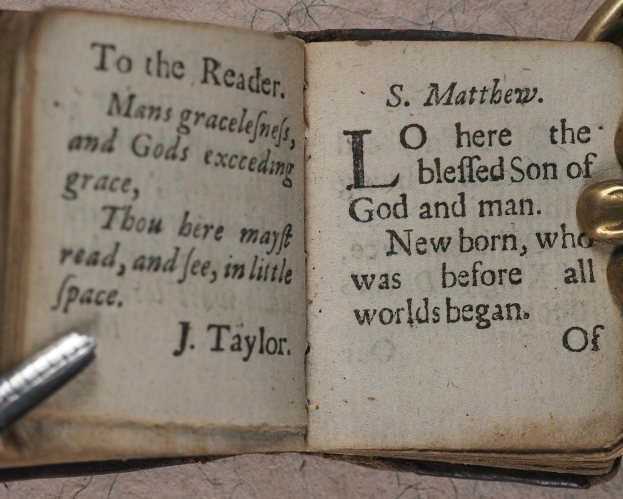 ![Load image into Gallery viewer, Thumb Bible. Verbum Sempiternum [and] Salvator Mundi, [by John Taylor]. F. Collins for T. Ilive. At the Nags-Head in Jewen Street. London. 1693.](http://miniaturebooks.co.uk/cdn/shop/files/P3062799_110x110@2x.jpg?v=1741260283)
