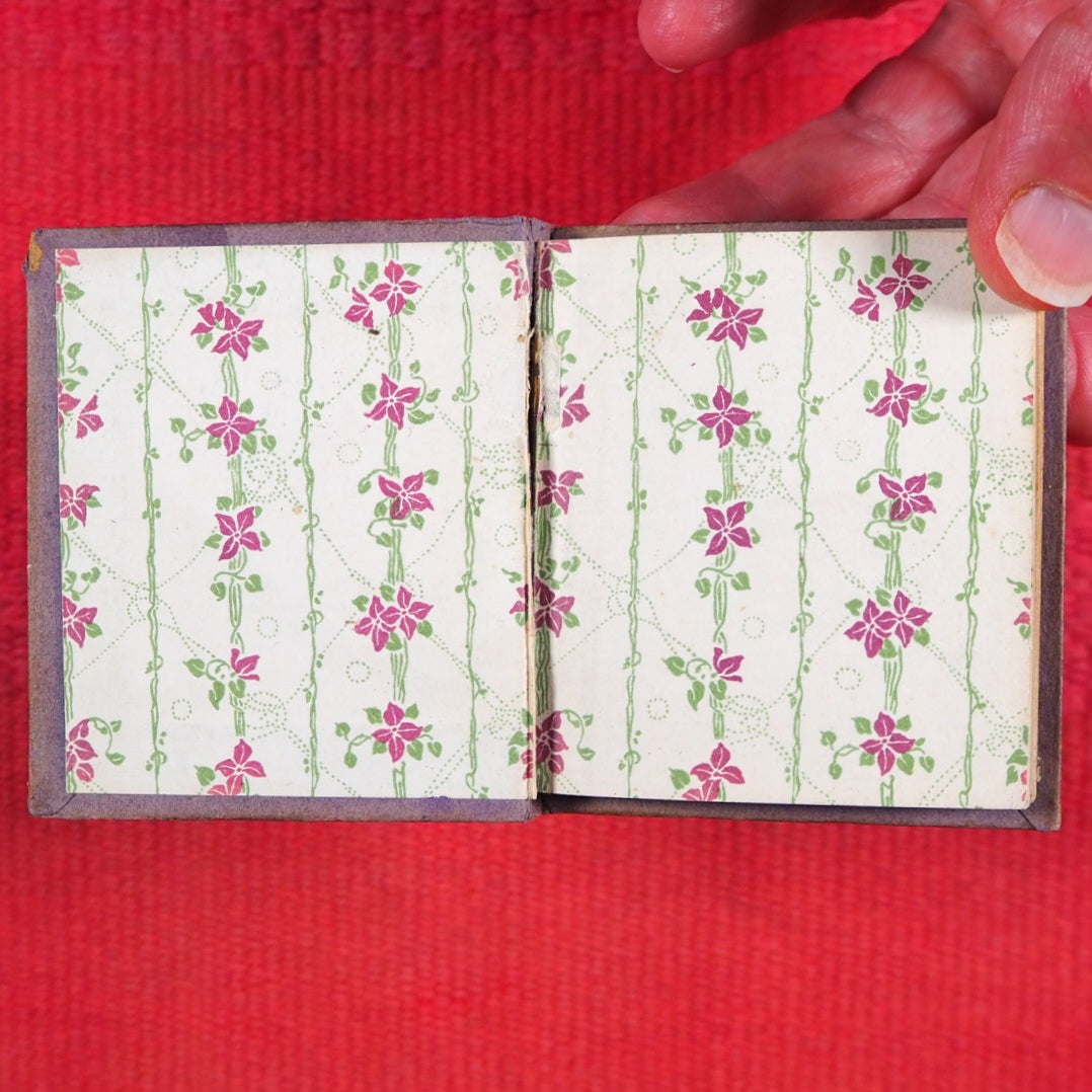 Circa 1910. 31, [1] pages. Colour frontispiece. Printed in green throughout. Rhyming prose fairy-tale. Slightly age-faded. Original purple and green floral endpapers. 69 x 79mm. Original purple paper covered boards with colour printed plate tipped onto front cover, as issued. Hinges cracked, text adhering to cover but with some weakness at the back. An original and charming fairy tale about the wicked Panjandrum, the Golden Thread, Mother Moly (a wicked witch), and her slave-girl, Esmeralda in the land of Ding-a-Dong. Not in Bondy, nor Spielmann, nor Welsh. This is the only edition. OCLC number, 79892402. WorldCat locates 6 copies worldwide (Cambridge University, Bryn Mawr College, Virginia & Indiana Universities, Huntington and National Library of New Zealand). Seller Inventory # 5413