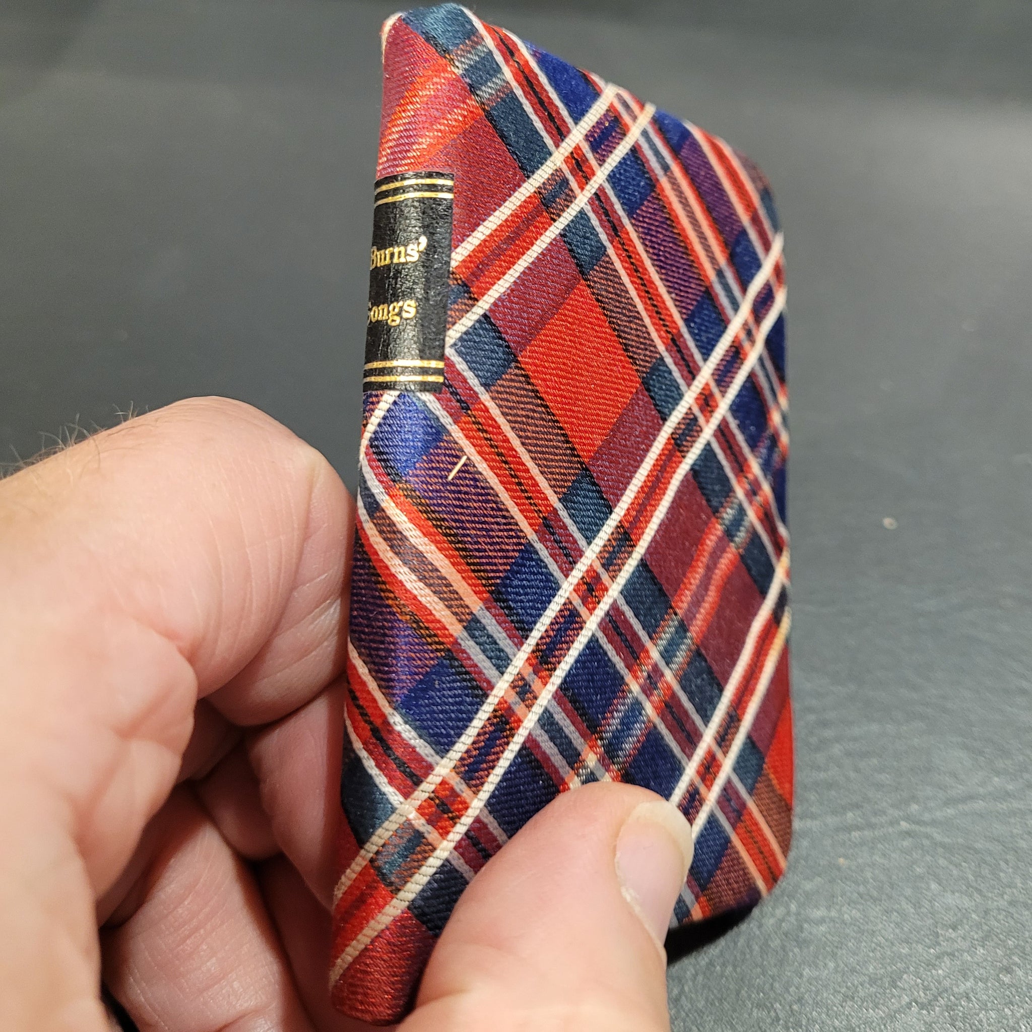 Bound in MacFarlane silk tartan with title on a black label on spine in gilt. All edges gilt.
