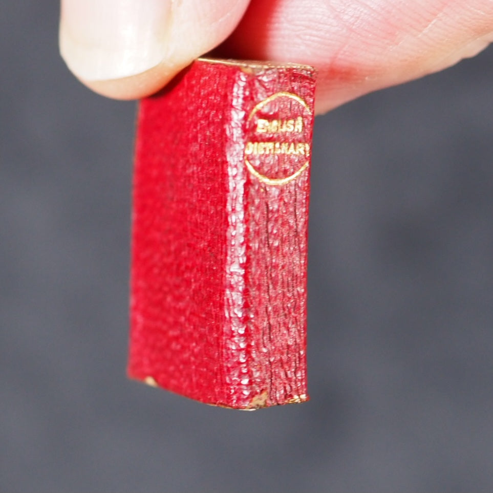 Smallest English Dictionary in the World. Comprising: besides the ordinary and newest words in the language, short explanations of a large number of scientific, philosophical, literary and technical terms. Bryce, David & Son. Glasgow. 1893. [SOLID SILVER LOCKET] 384 pages. Printed on finest India paper. Portrait frontispiece of Dr. Johnson. Mite series. Set in 1-1/2 point type. Printed by Robert Maclehose, Glasgow. ""Dedicated by the publishers to Mrs Kendal in appreciation of kindly encouragement given to the production of tiny articles, of which she, has a unique- collection."All edges gilt. 19 x 28 mm. Original red morocco."English Dictionary" front cover and blank rear cover. Complete with scarce and desirable solid silver locket , fully hallmarked in two places for Sampson Mordan & Co,1893/4 London. built in magnifying glass (scratched) and original silver loop. Bryce offered their dictionaries in a choice of Metal cases (1s.3d.), Tartan (1s.6d.), Yapped leather (2s.0d.), Silver gilt (2s.6d.), Gilt or engraved (3s.6d.) & Silver hallmarked locket (7s.6d.) -this example was the most costly and by far the hardest to find. This is one of a number of minuscule books published by Bryce by the process of photographic reduction. They are all legible with a magnifying glass and the equivalent of 1 1/2-point. This is number 18 in Ruth Adomeit's List of 32 Basic Books for the Serious Collector. Although "thousands of these dictionaries were published, they are now becoming distinctly scarce and command steadily rising prices" [Bondy]. Bondy, 106. Garbett, 25. Spielmann, 464. Welsh, 2408. Seller Inventory 64 firsts2024