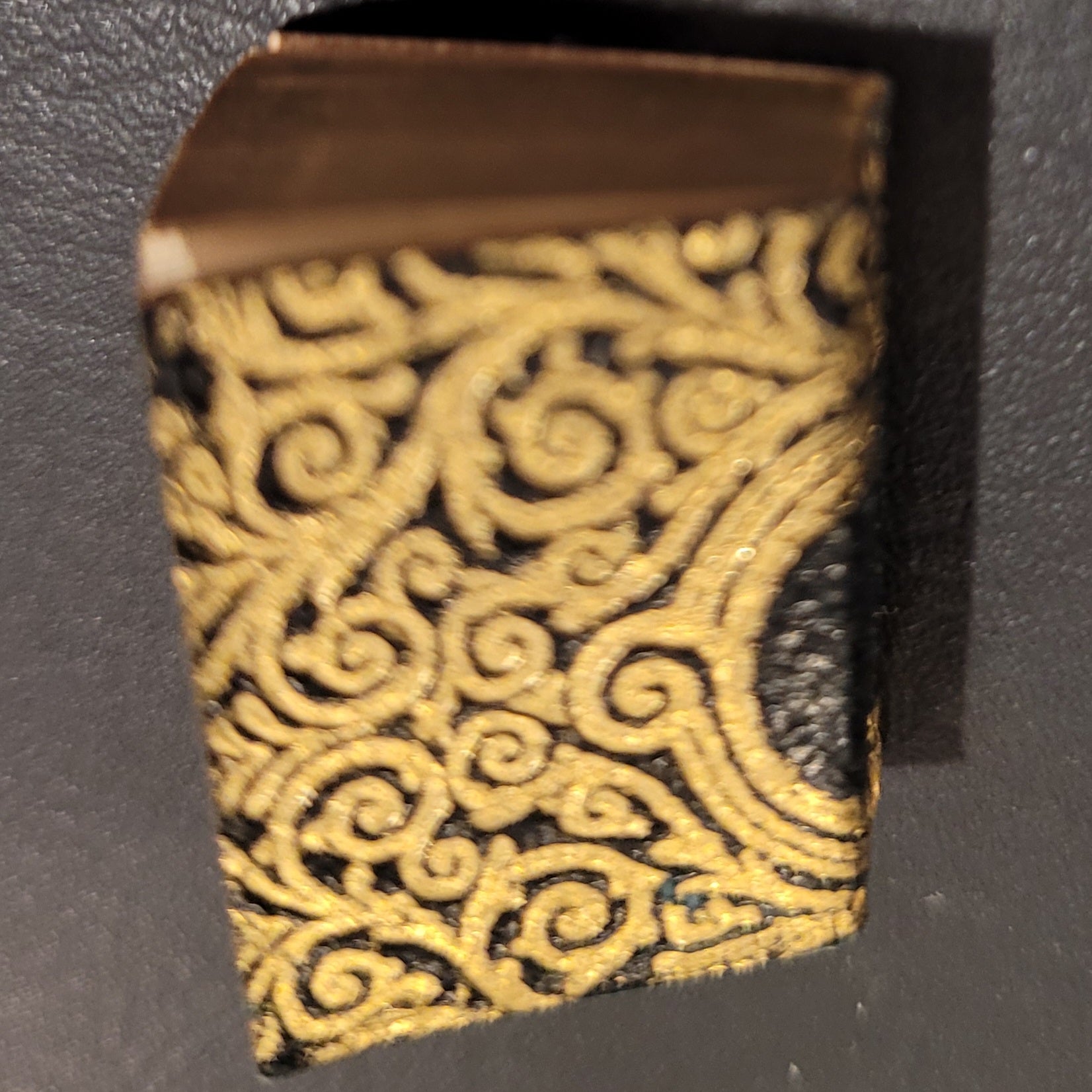 Printed in Arabic, with decorated borders to each page. Bound in black (less common) morocco with gilt curlicue decoration overall. Gilt edges.