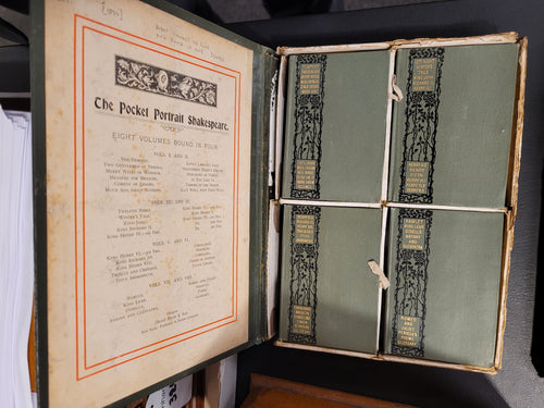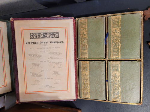 Complete Works of Shakespeare "The Pocket Portrait Shakespeare 4 vols contained in a Green faux book-box, divided into four compartments.