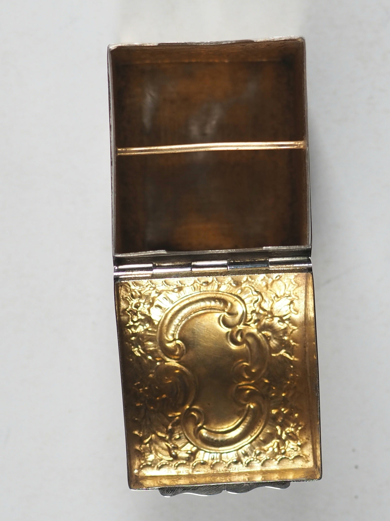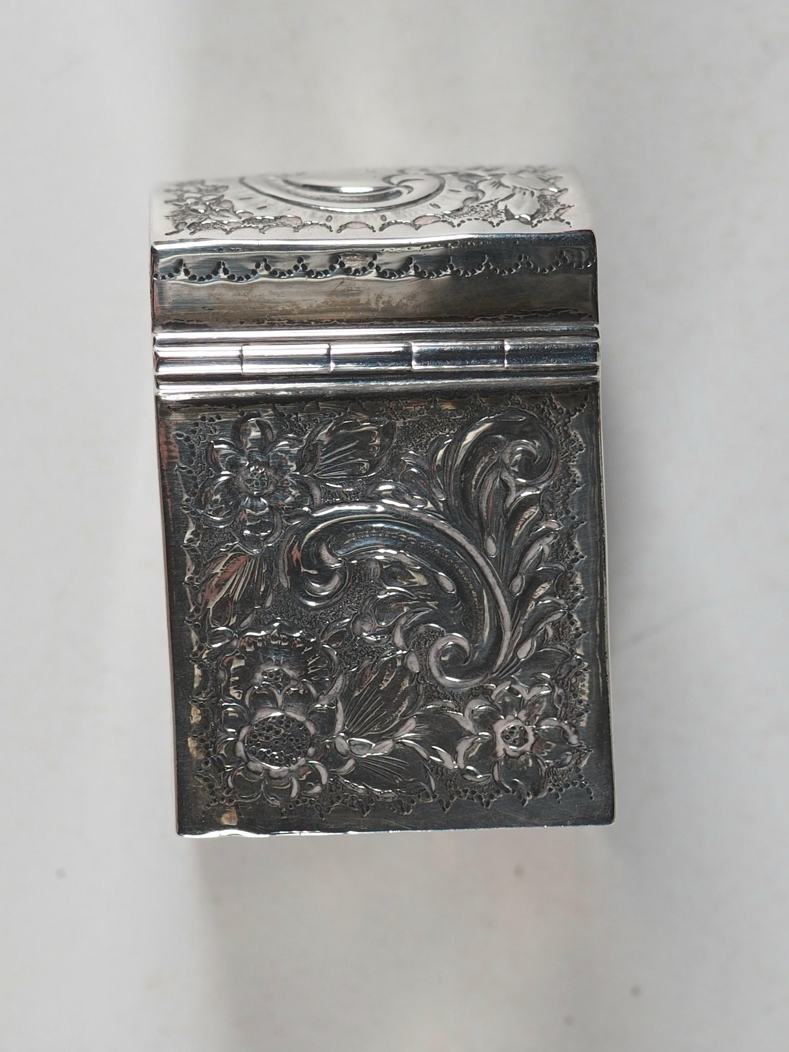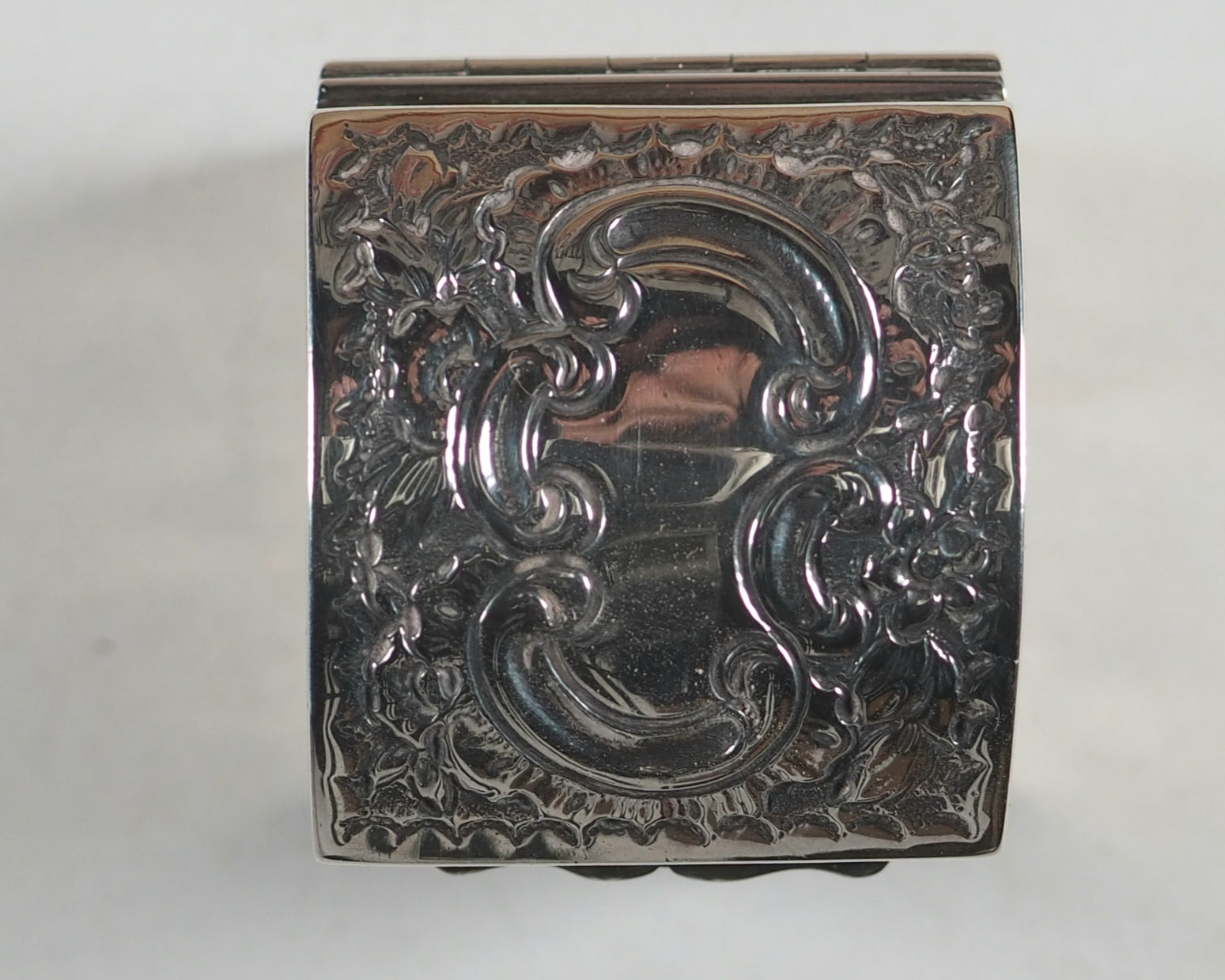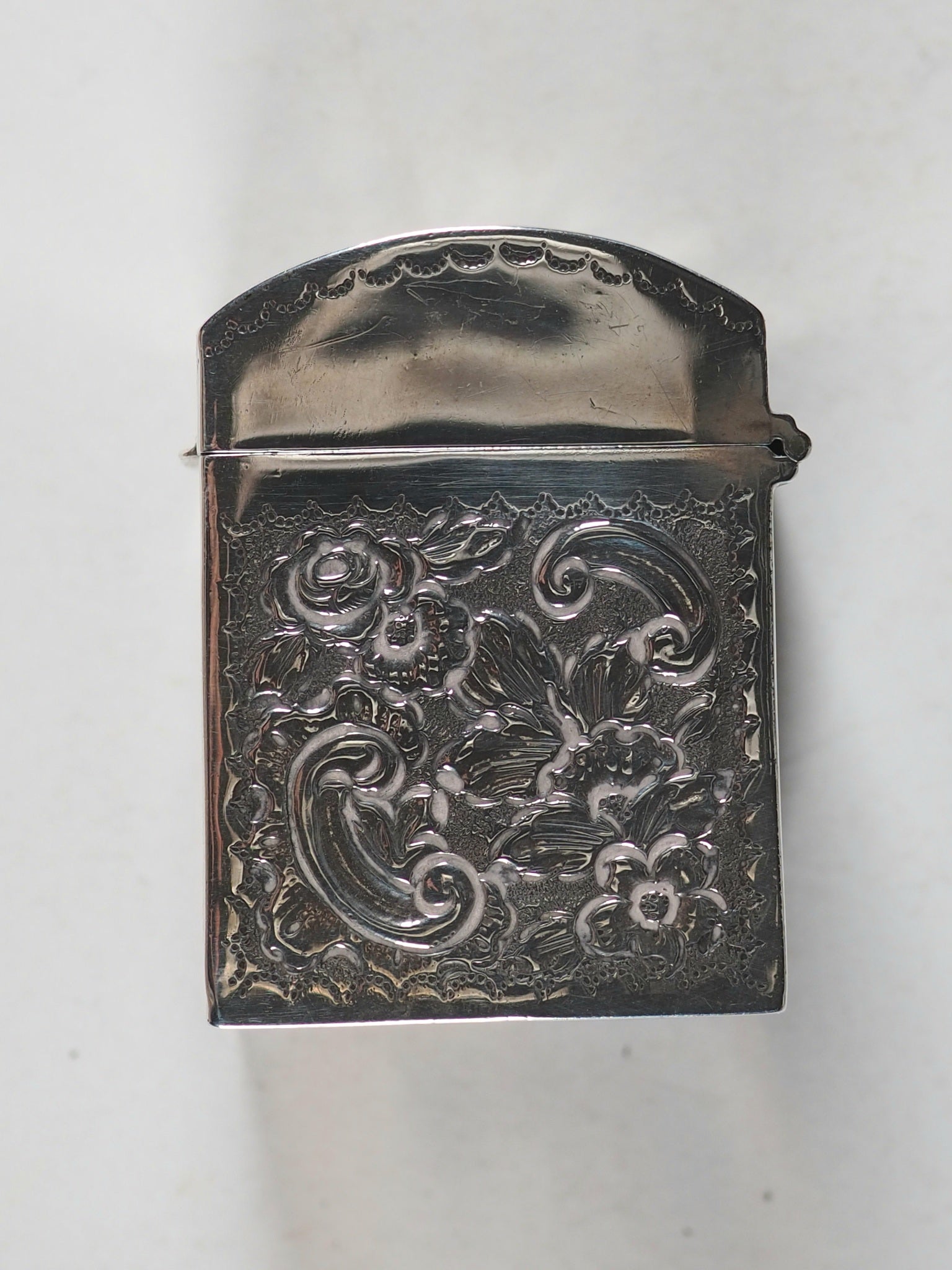 Playing cards. Miniature antique playing cards in contemporary box. United States Playing Card Company. Cincinnati, USA.Circa 1898. Miniature playing cards, 2 complete sets. Sets contained in a Victorian silver miniature playing card box fully hallmarked on body and on lid, for James Deakin & Sons, London, 1898. Embossed rectangular form, the domed hinged lid with plain scrolled cartouche, embossed and engraved decoration, and fully silver gilt interior. 3.6 x 5.2 cm. With printed and hand written insurance valuation dated 26th October 1973 for £40.00. W. Duke, Sons & Co. was a tobacco manufacturer founded by Washington Duke in 1881. His son, James B. Duke, later became president of the American Tobacco Company. All edges gilt. One set with red geometrical backs and the other with identical decoration but in green.