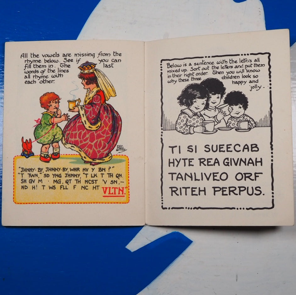 16 printed pages (4 in full colour). Vignette illustrations on endpapers. 10 x 13.5 cm. Original colour printed card covers. Staple bound as issued. A slice of advertising to promote Ovaltine to families & particularly focusing on children aimed at five- to fourteen-year-olds. A radio program , The League of Ovaltineys, with a similarly aged audience, was broadcast to Great Britain by Radio Luxembourg on Sunday evenings at 5:30 PM. Beginning in February 1935, it was broadcast until September 1939, when the outbreak of World War II forced closure of the station, and again after the war from 1952. As with the U.S. program, listeners could obtain badges, pins, and secret codes. The Ovaltineys' advertising jingle, which featured the popular English singing trio The Beverley Sisters, was regarded as one of the most successful jingles of the era.