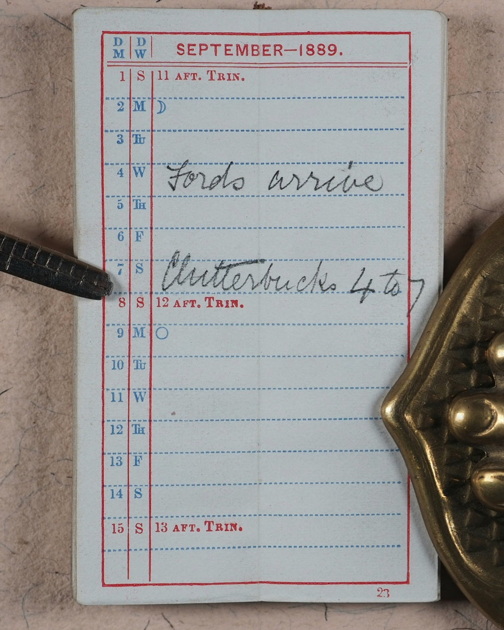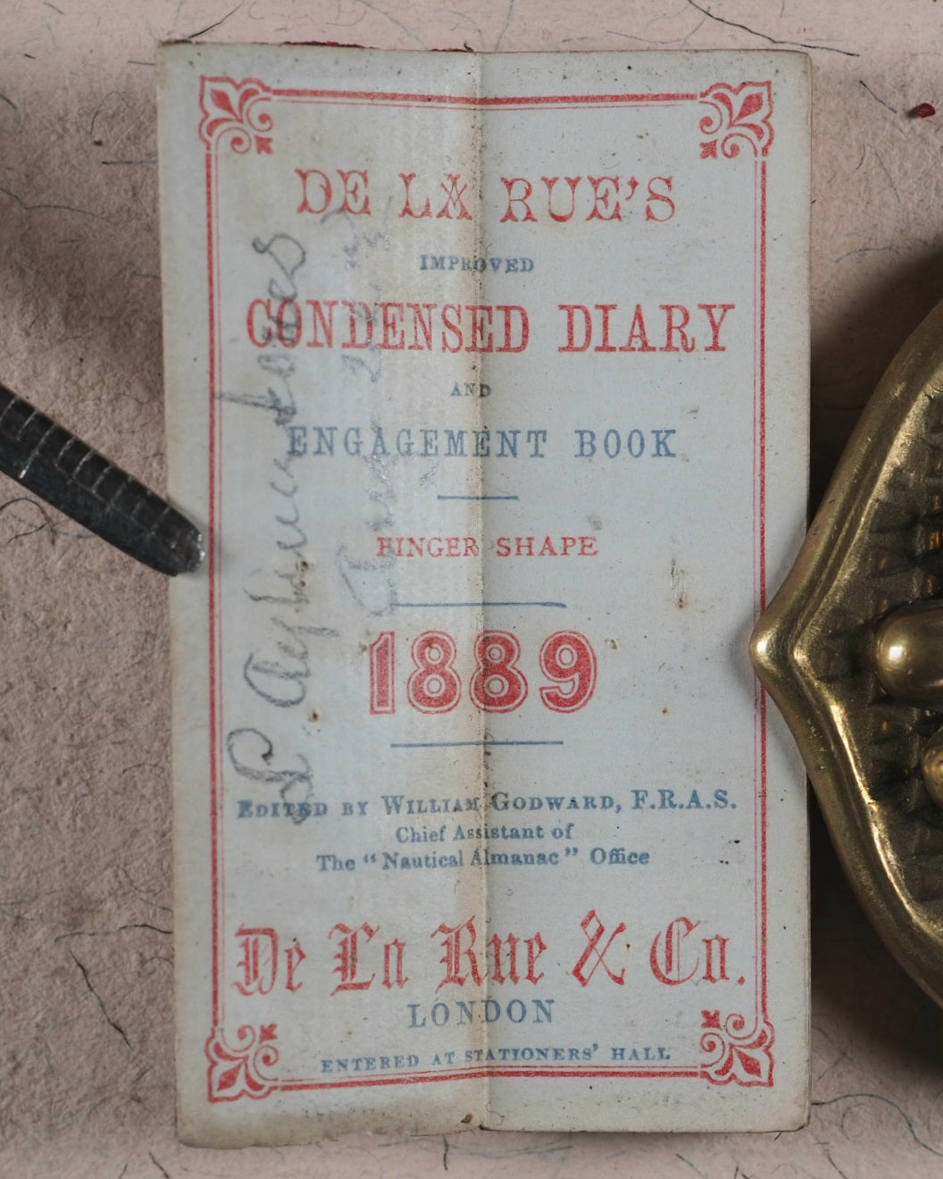 ![Load image into Gallery viewer, De La Rue's Improved Condensed diary and engagement book. Finger shape. 1889. De La Rue & Co. London. [1888].](http://miniaturebooks.co.uk/cdn/shop/files/P3052687_110x110@2x.jpg?v=1741187366)