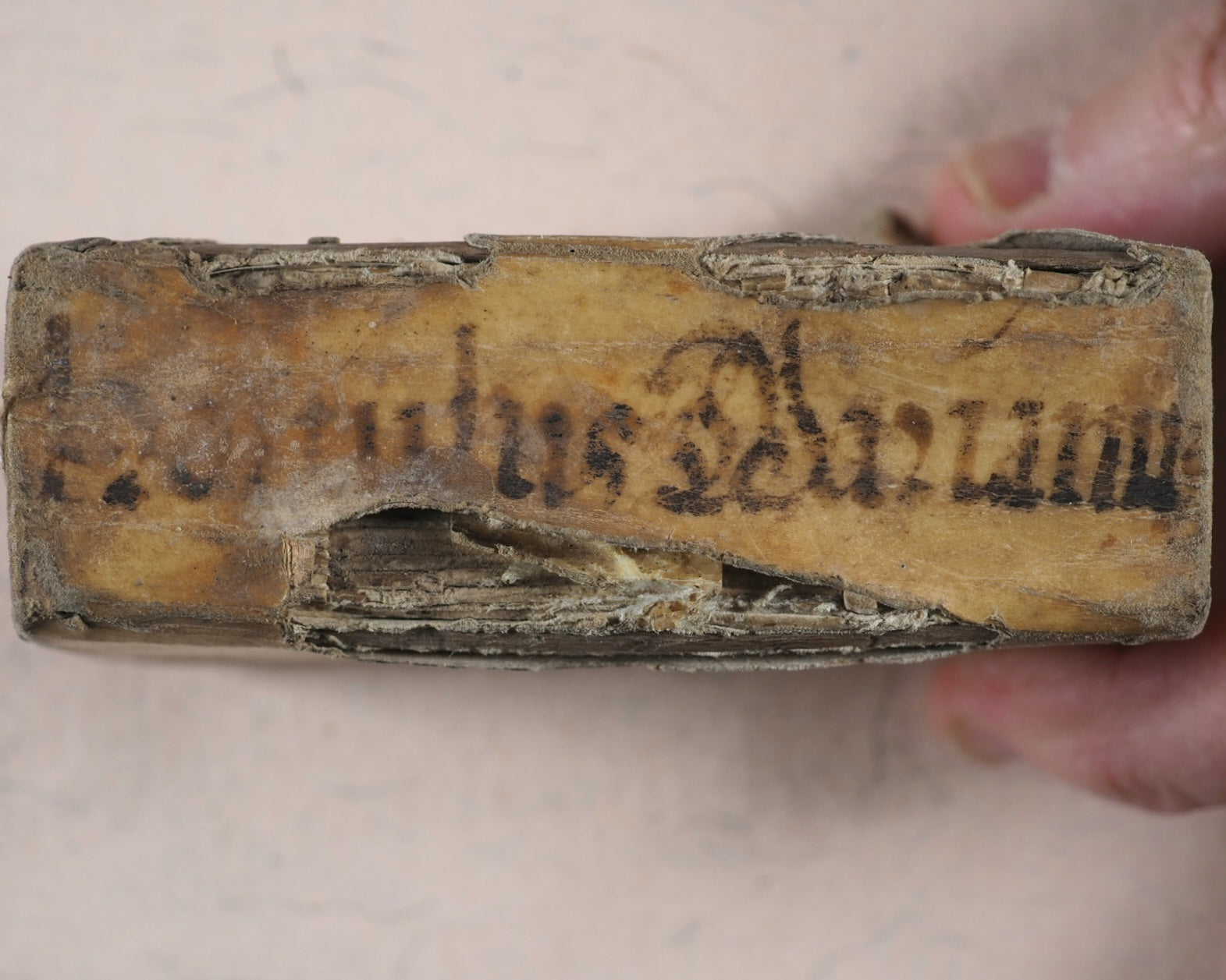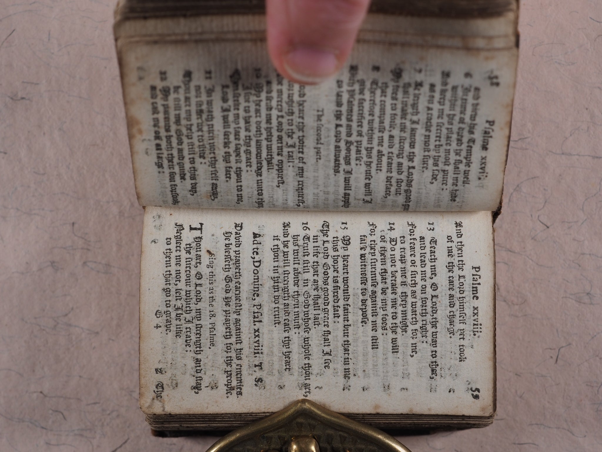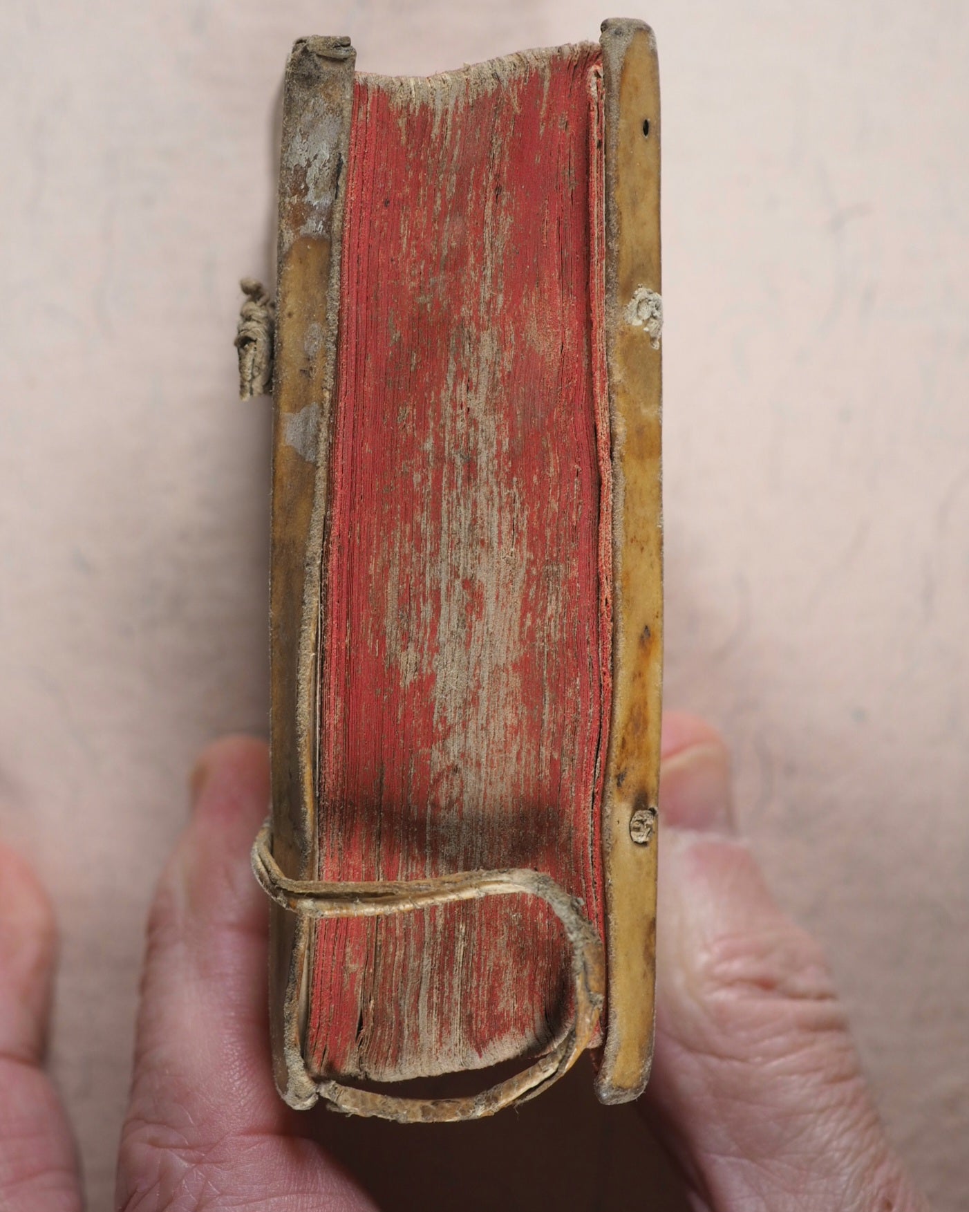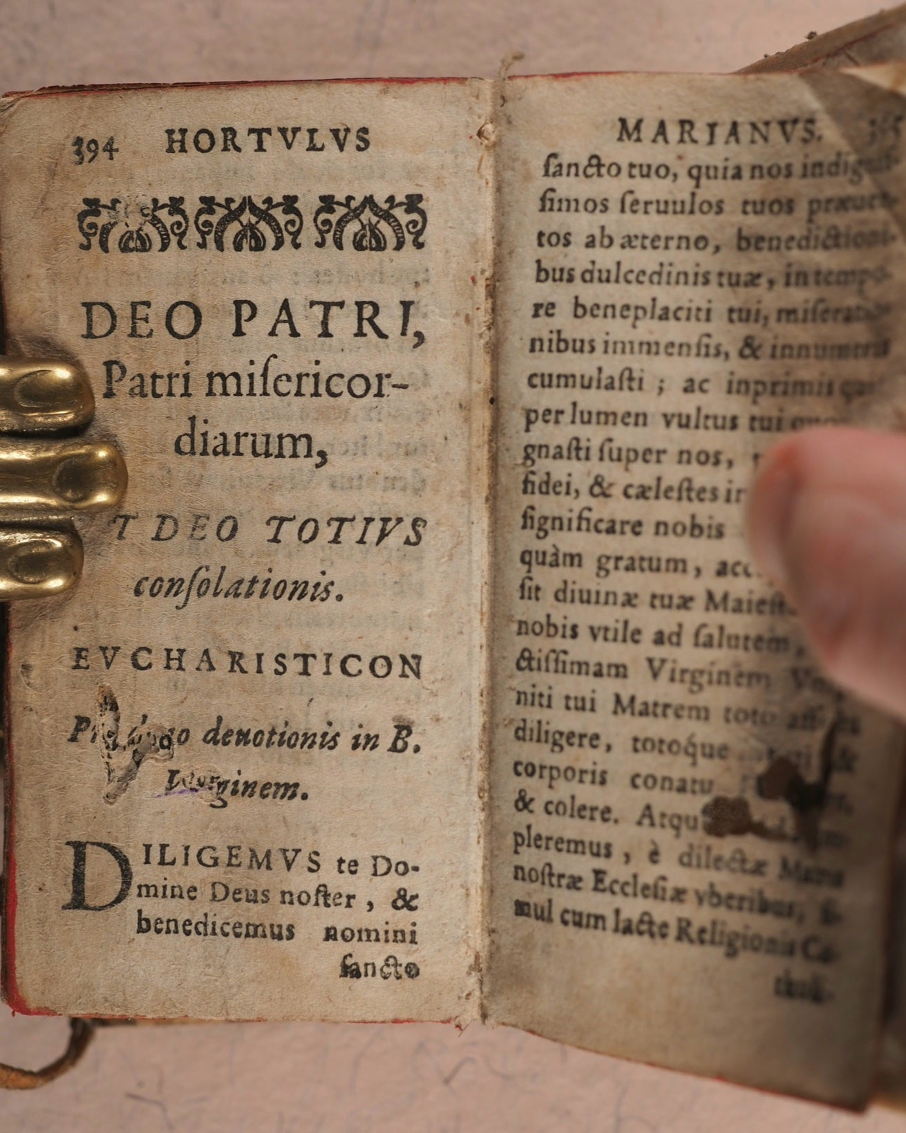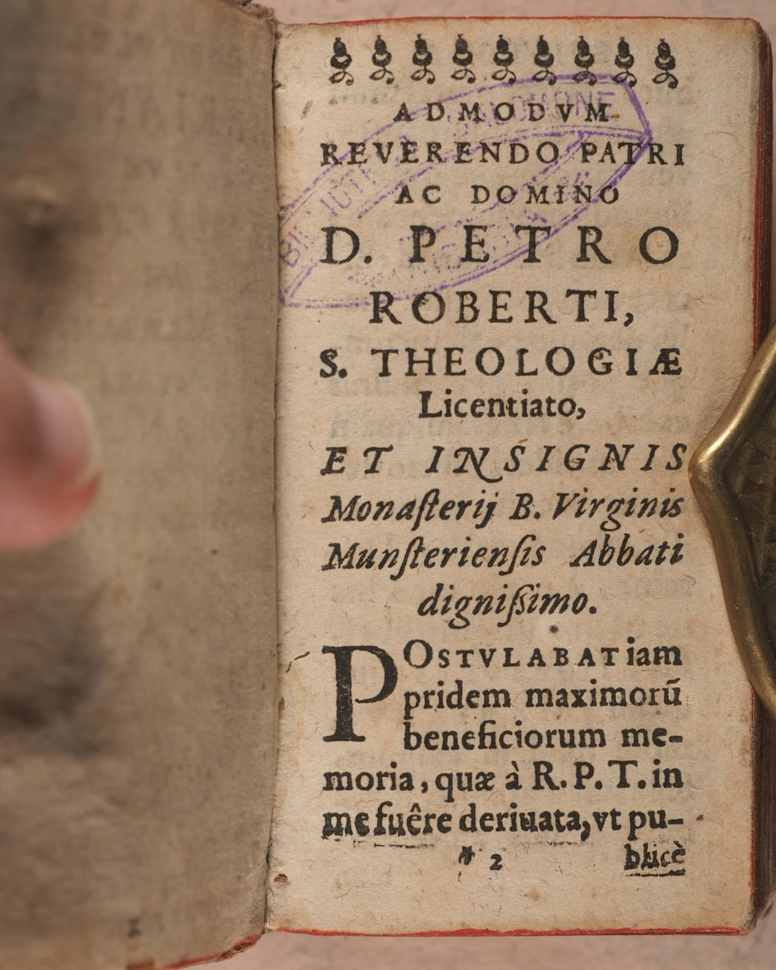 [32], 397, [1] printed pages in Latin. The author was François de la La Croix, Kurtzböck, 1582-1644. The printer was Reulandt, Hubert (1590-1661?). The book covers the various practices of worshiping the Blessed Virgin Mary. Some age-toning and a few leaves slightly browned. Last seven leaves have worming that affects some lines of text. All edges red. Original cream endpapers. Ink stamp on second leaf and printed label on front paste-down endpaper of Biblioteca di G.Salomone, Nicosia, dated 1911. Salamone 1897-1986), Baron, heir to the title of the Falco family, a graduate in medicine, he was also mayor of Nicosia in the 1950s (if he is not a namesake). An Honorary bibliographic inspector, Salomone was a member of the Italian Library Association from1954 and participated in some national conferences starting in 1957. In May 1964 he was elected to the Board of Directors as a representative of the non-librarian members category and was then confirmed for the three-year period 1967-1969. During this period he was also part of the editorial committee of the «Bollettino d'informazioni». 55 x 95 mm. Contemporary full vellum over original wooden boards with just one original tie intact; spine with contemporary ink titling in black. Hinges worn and sections of the spine and covers missing. Rear hinge split and binding rather loose but still intact. Not in Bondy, nor Spielmann, nor Welsh. OCLC, 1067852244. WorldCat locates 2 copies worldwide (NUKAT, Warsaw and Universitäts- und Stadtbibliothek Köln).