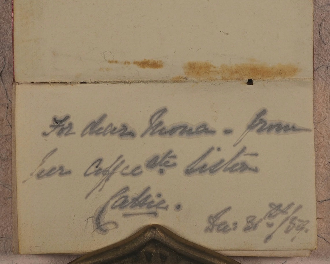 32 unnumbered pages. All edges gilt. Yellow endpapers. Contemporary ink ownership inscription on front free endpaper, dated 1859. A few contemporary entries in both pencil and in ink. 35 x 62 mm. Original ruby morocco wallet style binding. Bondy, 44. Not in Spielmann, nor Welsh. WorldCat locates no copies worldwide.