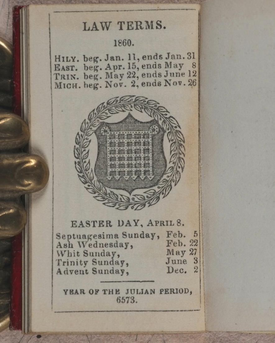 ![Load image into Gallery viewer, Tilt’s Miniature Almanack for 1860. Kent, W. and Co. Fleet Street. Late David Bogue. London. [1859].](http://miniaturebooks.co.uk/cdn/shop/files/P3284390_110x110@2x.jpg?v=1743172452)
