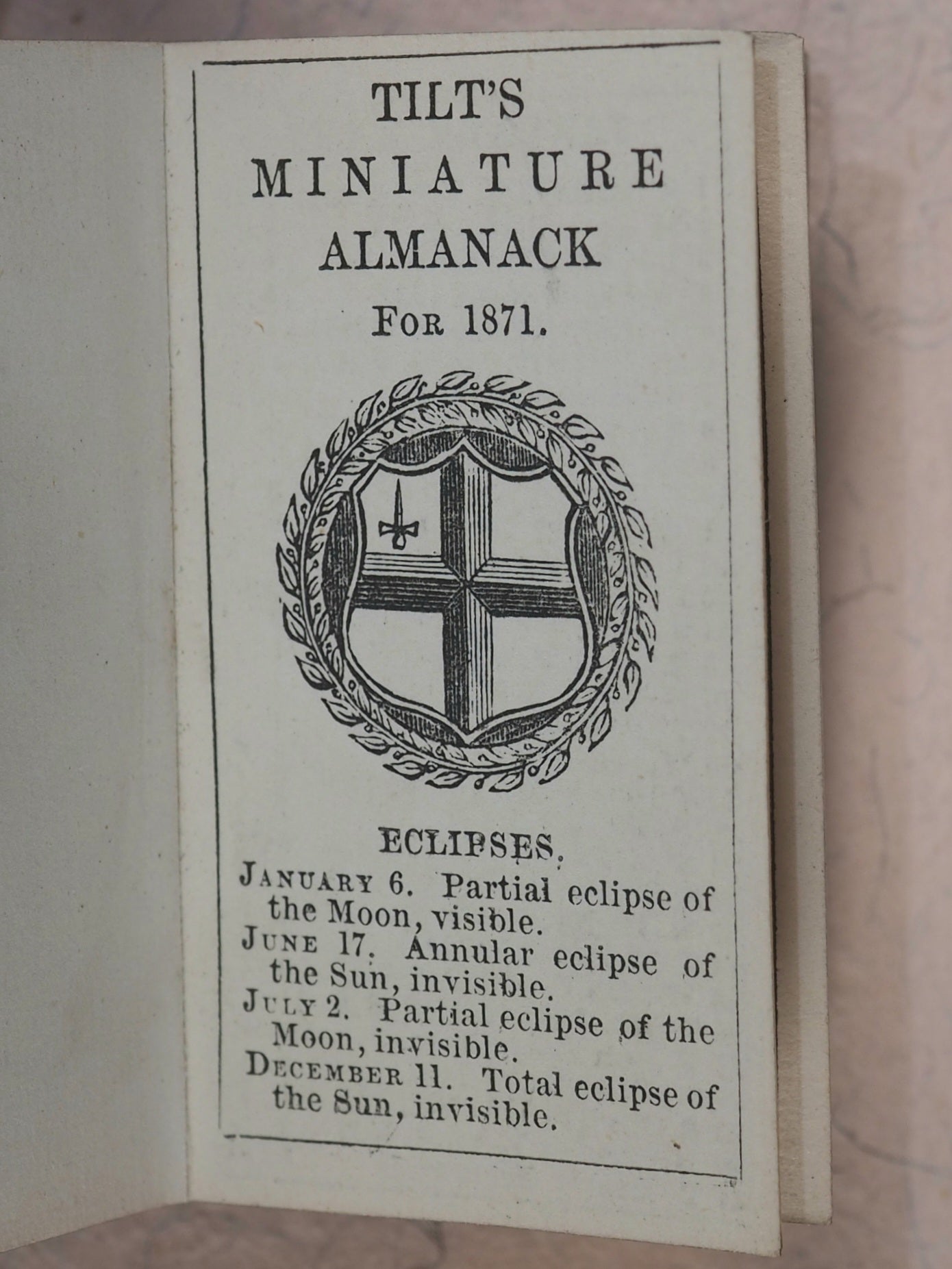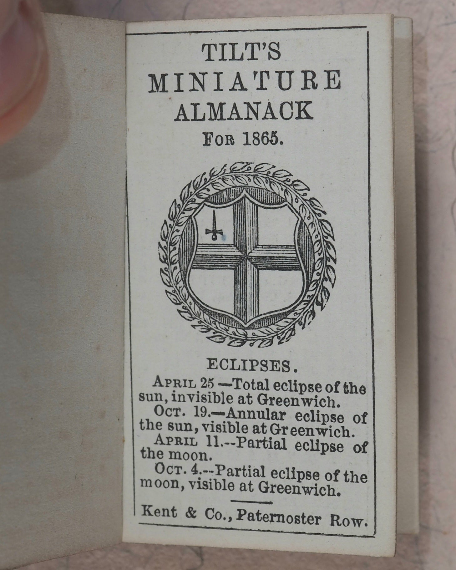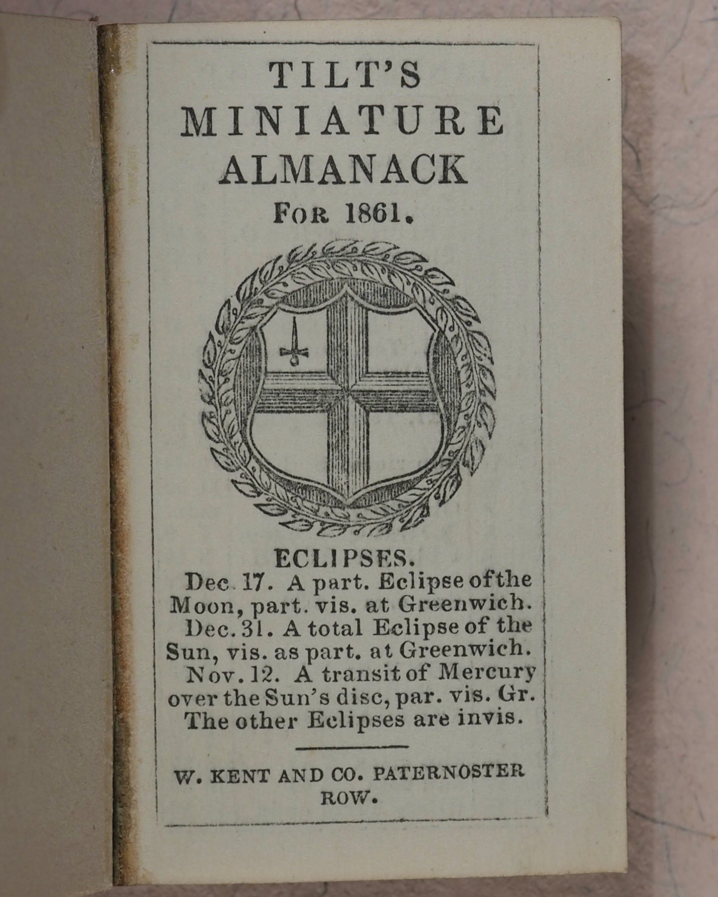 ![Load image into Gallery viewer, Tilt's Miniature Almanack. Various publishers. London. [1848-1870] >>RUN OF SCARCE COLLECTABLE ALMANACS<<](http://miniaturebooks.co.uk/cdn/shop/files/P1280752_110x110@2x.jpg?v=1738074285)