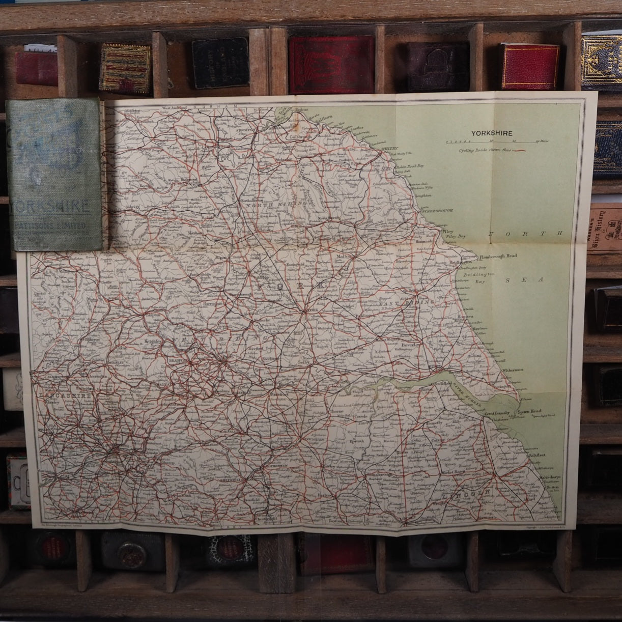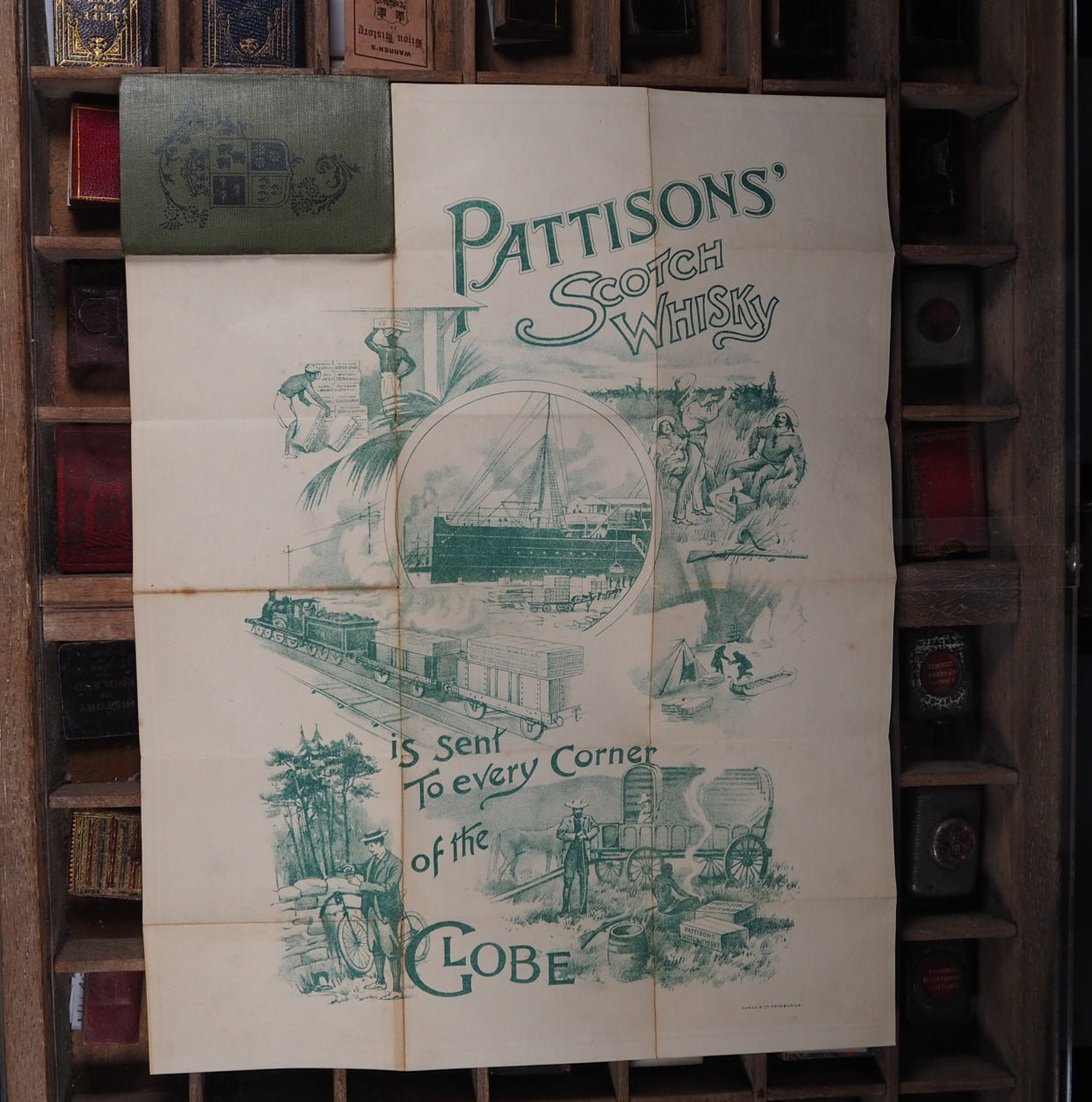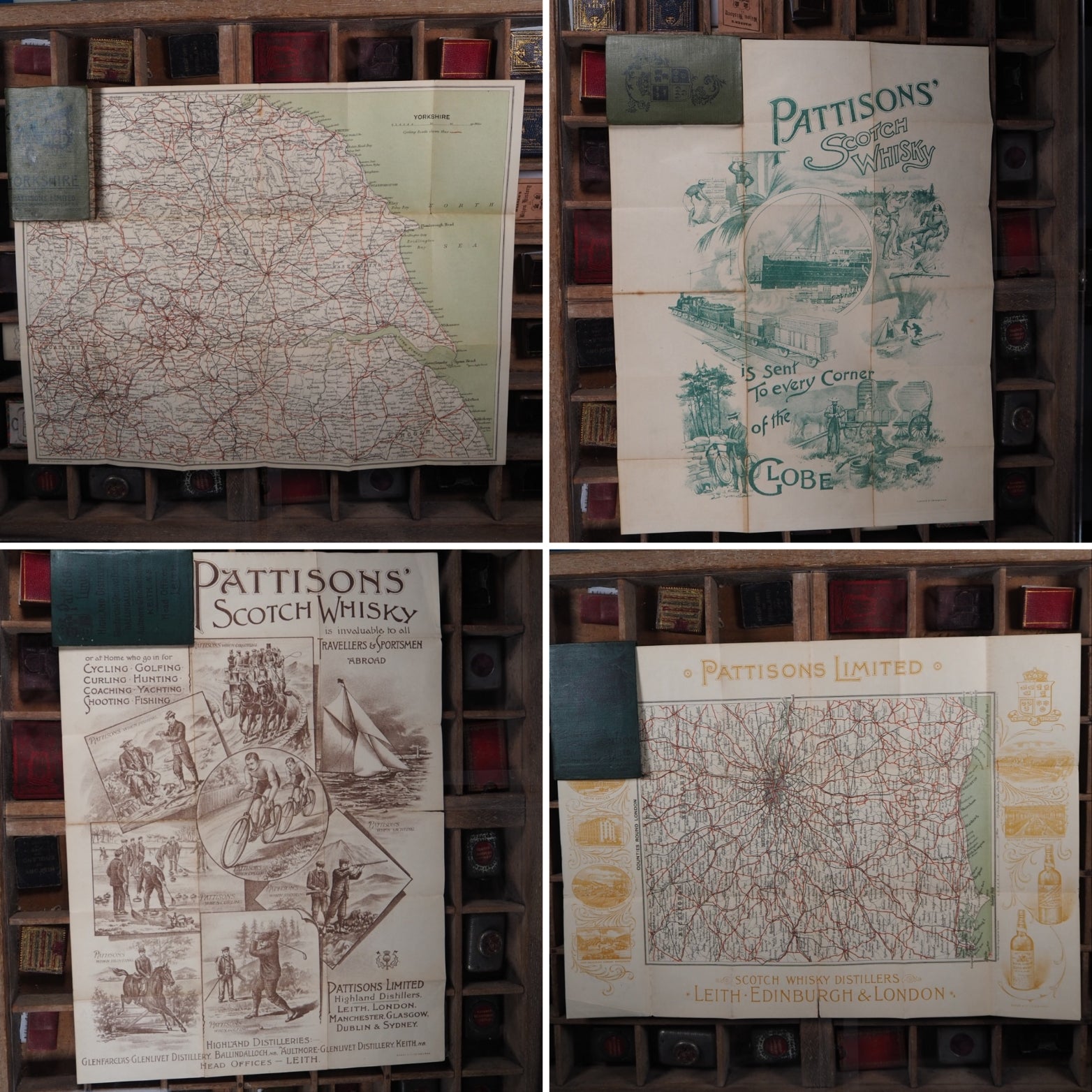 Complete or near complete set. Not dated, circa 1890, 23 paper maps, some with contemporary ownership signature of Will Robertson (all are in very good condition, with just a hint of wear) of: 1. - Hereford, Worcester, Gloucester, Oxford 2. - North Wales 3. - Northumberland & Durham 4. - Devonshire 5. - Shropshire, Cheshire, Staffordshire & Derbyshire 6. - Counties round London 7. - Dorset, Wilts + Hampshire etc. 8. - East Central Counties. 9. - Cumberland, Westmorland etc. 10. -South Wales. 11. Yorkshire. 12. - Lancashire and Isle of Man. 13. Cornwall. 14. - Essex & Kent. 15. -Norfolk and Suffolk. SCOTLAND: 1.-Argyllshire. 2.-Central Highlands . 3.-Eastern Counties. 4.-Invernessshire. 5.-North Eastern Counties. 6.-South Eastern Counties. 7.-South Western Counites. 8.-Sutherlandshire and Caithness. 2" x 3.5"; folding out to 10" x 12" with Pattisons' advert verso and in original Harlequin buckram covers (slightly rubbed in places, North Eastern Counties with old rebind in blue) . Back covers read: Pattisons Limited, Highland Distillers. Glenfarclas-Glenlivet Distillery, BALLINDALLOCH, N.B. Aultmore-Glenlivet Distillery, KEITH, N.B. Head Offices, LEITH. Housed in a contemporary fitted oak box with original, functioning key and silver metal fittings, including four mounted cartouches without any engraving available for added engraving if required (green baize on bottom replaced). This collection of 23 Pattisons Cyclists Road Maps, issued by Pattisons Limited, Scotch Whisky Distillers in the late 1800s, were little promotional gifts, promoting the Pattisons whisky blend, aimed specifically at sporting types (hunting, shooting, fishing, yachting, golfing, curling, coaching, and cycling!). In the late 19th century Pattisons was the largest whisky wholesaler and blender in Scotland. Pattisons was run by brothers Robert & Walter Pattison, who had inherited it from their father, and it enjoyed spectacular growth in the 'whisky boom' of the late 19th century. It ran into serious financial difficulites and collapsed in 1899 as a result of fraud and serious mismanagement by the two brothers, both of whom subsequently served prison sentences. Seller Inventory # 5290