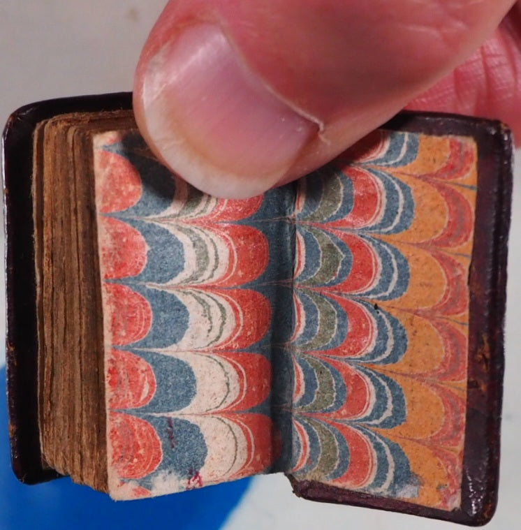 187,[1] printed pages (pages evenly toned; final leaf loose and type close to the gutter offset onto verso of rear free endpaper). Marbled endpapers. 26 x 38 mm. Contemporary brown calf (slightly rubbed and hinges cracked, but firm). Spine with four raised bands (slightly worn at head). Boards blind stamped with corner and centre-pieces and with single fillet borders. Complete with contemporary calf-covered, card slipcase, lined with marbled paper and with blind decoration to match the boards (upper section slightly damaged with tiny corner section of leather rubbed away). Earliest recorded edition of this title in miniature was 45 years earlier, in 1692. Gumuchian, 4077. Houghton, 253. Welsh, 2745. WorldCat locates just three copies world wide (Biliotheque Nationale de Paris, Indiana and Virginia Universities). Delightful and desirable 283 year-old devotional miniature book in contemporary binding and slipcase. Seller Inventory # 5239