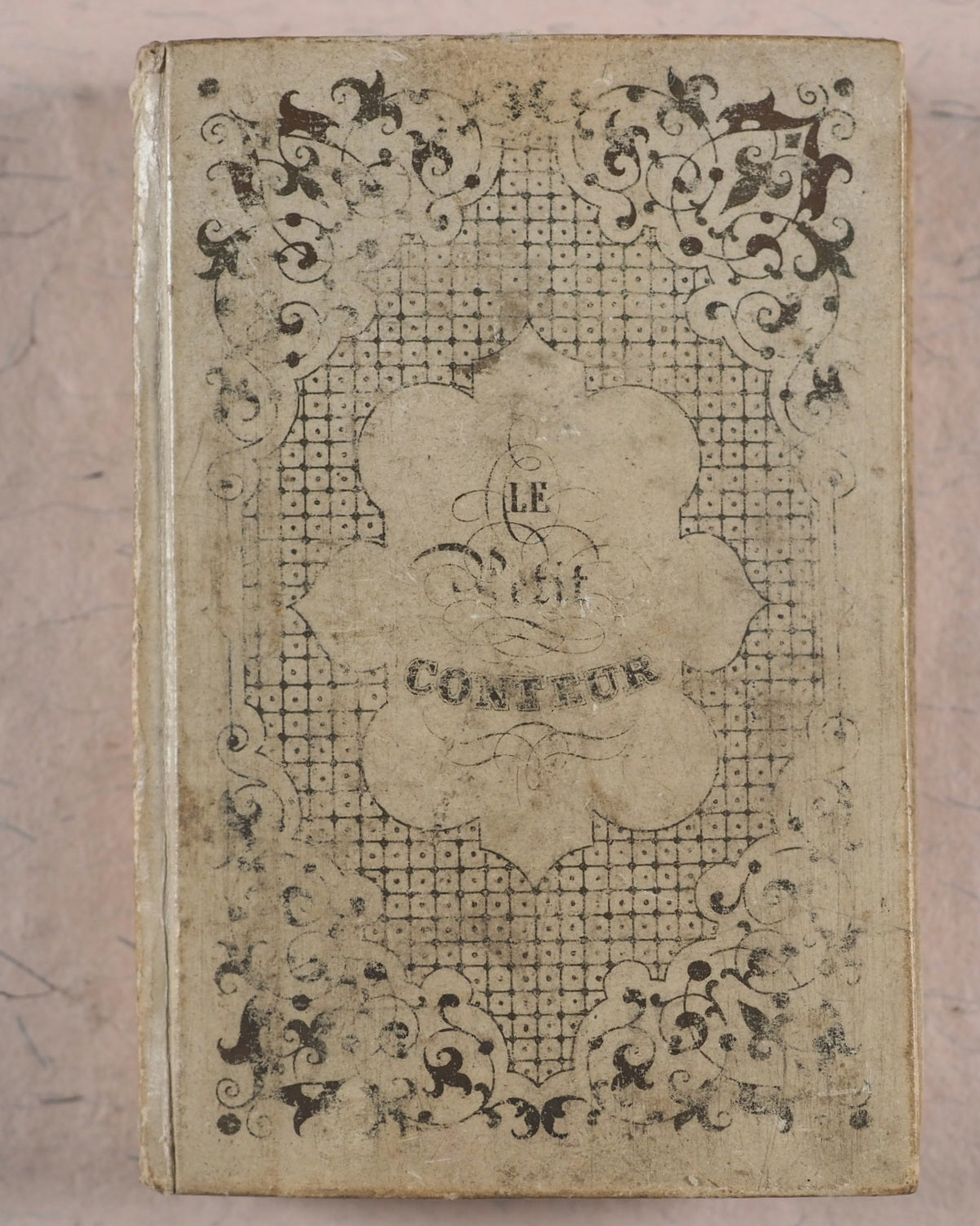 126 printed pages. Engraved title and four plates. Printed by A.Pinard Quai Voltaire, 15 Paris. 51 x 72 mm. Original printed card binding; spine and covers with faded gilt roccocco style decoration; front cover with 'Le petit Conteur' in central panel. Covers faded and slightly worn. Binding very slightly askew. Not in Bondy, nor Spielmann. Gumuchian, 4120. Nauroy, 74.  OCLC, 460716822. WorldCat locates one copy worldwide (Bibliothèque Nationale de France).