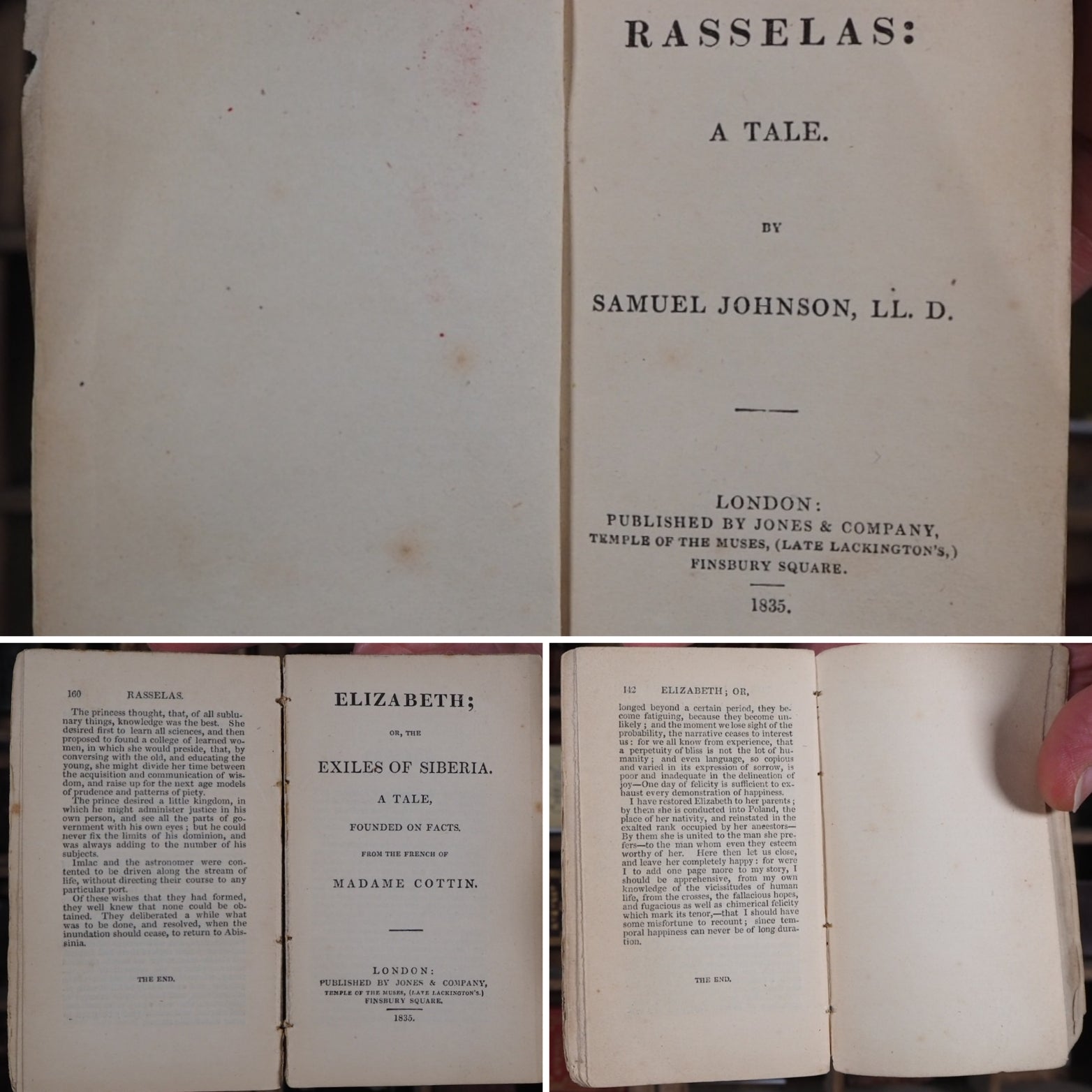 ![Load image into Gallery viewer, Johnson, Dr. Samuel [with] Madame [Sophie] Cottin. Rasselas: a Tale. [together with] Elizabeth; or, Exiles of Siberia. A Tale founded on facts, from the French of Madame Cottin. >>DOUBLE MINIATURE VOLUME<< Publication Date: 1835 CONDITION: GOOD](http://miniaturebooks.co.uk/cdn/shop/files/P7055249_110x110@2x.jpg?v=1688554415)