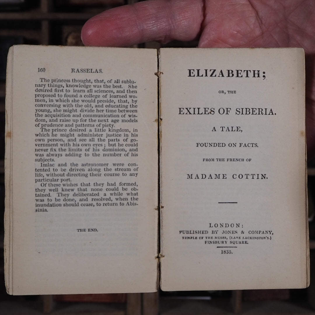 ![Load image into Gallery viewer, Johnson, Dr. Samuel [with] Madame [Sophie] Cottin. Rasselas: a Tale. [together with] Elizabeth; or, Exiles of Siberia. A Tale founded on facts, from the French of Madame Cottin. >>DOUBLE MINIATURE VOLUME<< Publication Date: 1835 CONDITION: GOOD](http://miniaturebooks.co.uk/cdn/shop/files/P7055254_110x110@2x.jpg?v=1688554416)