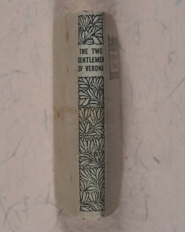 295 printed pages, printed on India paper. All edges gilt. Printed at the University Press, Glasgow, MCMIV. Dedicated by special permission to Miss Ellen Terry. Volume 2, Ellen Terry Shakespeare. Top edges gilt. Original dark blue endpapers. 32 x 49 mm. Original full burgundy calf with gilt titling and decoration to the spine and front cover. Complete with printed cream dust-jacket. Dust-jacket slightly foxed and some minimal wear to spine. Bondy, 114-5. Garbett, 38. Welsh, 6336. OCLC, 297611128.