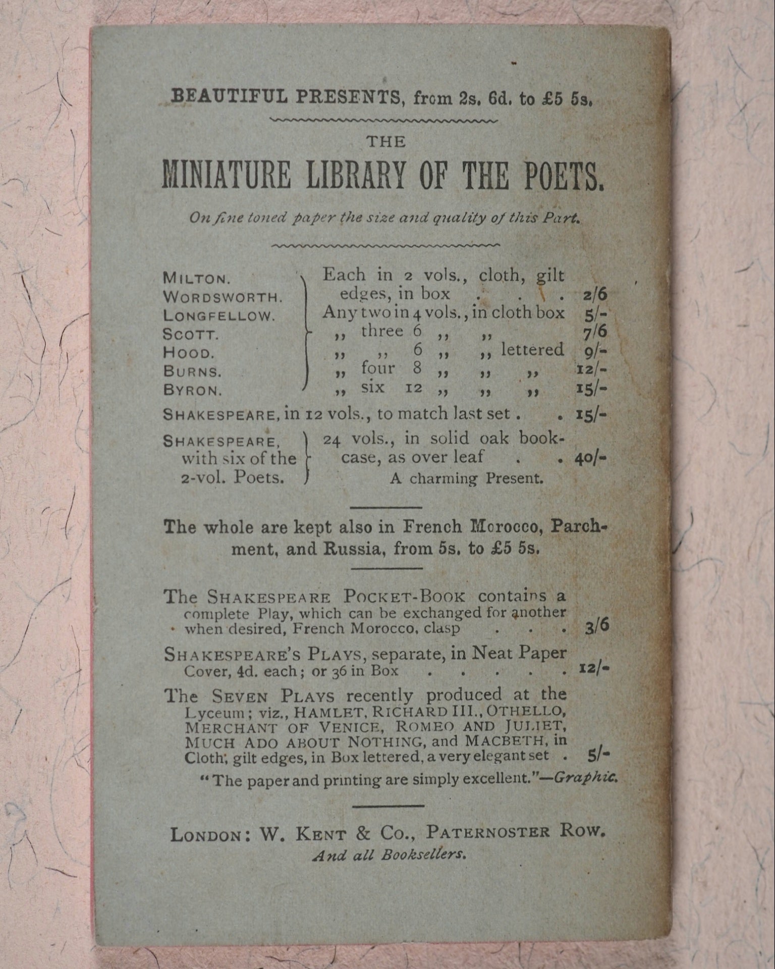 Miniature Library of the Poets. W. Kent and Co. Paternoster Row. London. [1880].