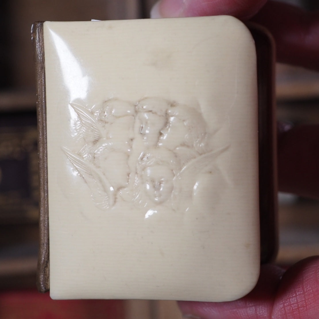 Undated, but 1913. Diamond 128mo. 2 volumes in 1. 688, 1 unnumbered leaf of plates; 861 printed pages, 1 unnumbered leaf of plates. Thin paper edition. Printed by Horace Hart, printer to Oxford University. Imprint for Hymns ancient and modern: London : Printed for the proprietors by William Clowes & Sons, Limited. Hymns ancient and modern includes index. Inner gilt dentelles. Rounded edges. Rounded corners. All edges gilt over red. Original white endpapers. Contemporary pencil inscription on front paste-down endpaper, dated 1914. Provenance: Maude Raven from Kings Lynn. 48 x 56mm. Original grey calf spine with gilt titling, three cross motifs and double horizontally ruled lines (some vertical ridges); covers in ivorine polymer, front cover embossed with a version of Reynold's Angels. Welsh, 1856 (?). OCLC number, 233709258. WorldCat locates 2 copies of this edition worldwide (Princeton and Virginia University Libraries). Scarce Boots Ltd. edition in Ivorine Polymer. Seller Inventory # 5447