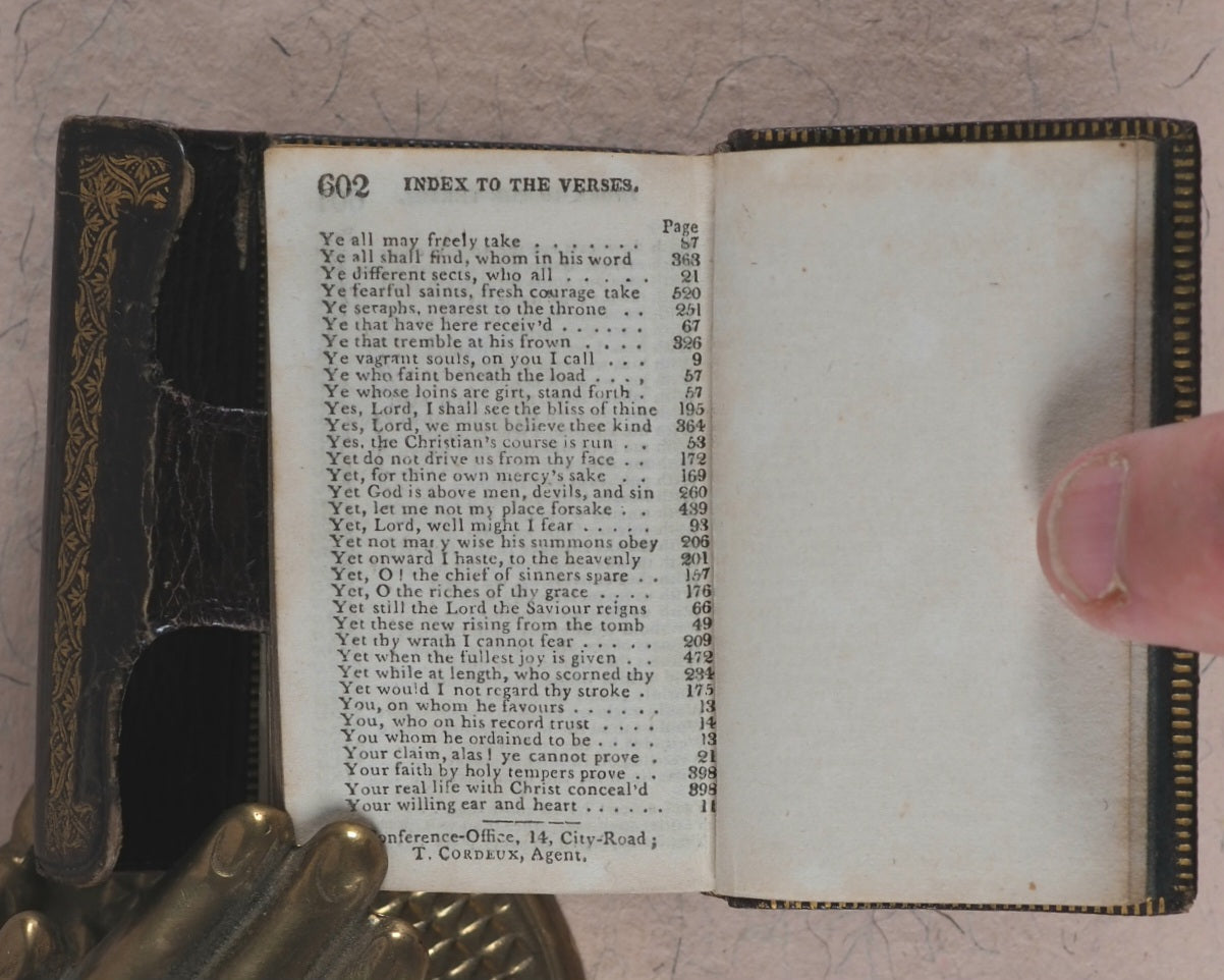![Load image into Gallery viewer, John Wesley. Collection of hymns for the use of the people called Methodists. Printed at the Conference-Office by Thomas Cordeux; sold by Thomas Blanshard, 14 City Road and 66 Paternoster Row, London. [1815].](http://miniaturebooks.co.uk/cdn/shop/files/P2151677_110x110@2x.jpg?v=1739638494)