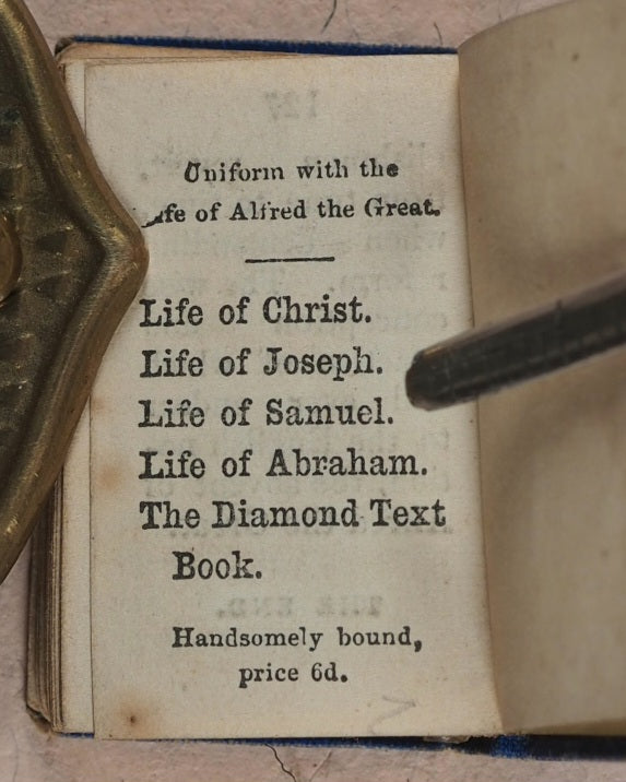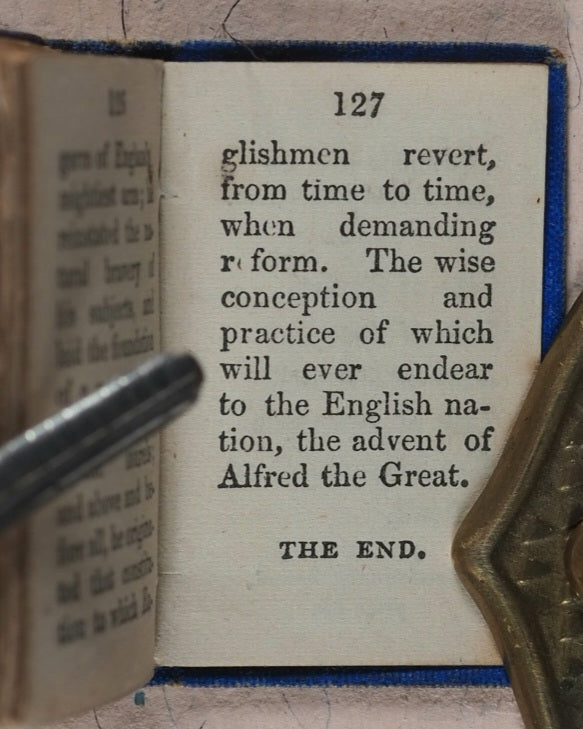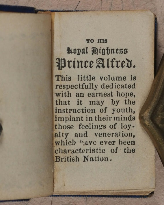 127 printed pages + 1 page publisher's adverts at end. Original primrose endpapers. All edges gilt. No inscriptions. 30 x 50 mm. Original blue cloth. Slightly rubbed . Gilt titling and decoration on spine and front cover; back cover decorated in blind. Uniform with other volumes in series. Very mild rubbing and minuscule stain on bottom of back cover. A similar example of this book can be found in Her Majesty Queen Mary's Dolls' House at Windsor Castle. Bondy, 130. Not in Spielmann. Welsh, 4388.  OCLC,1043371679. WorldCat locates two copies worldwide (Oxford, and Virginia University Libraries).