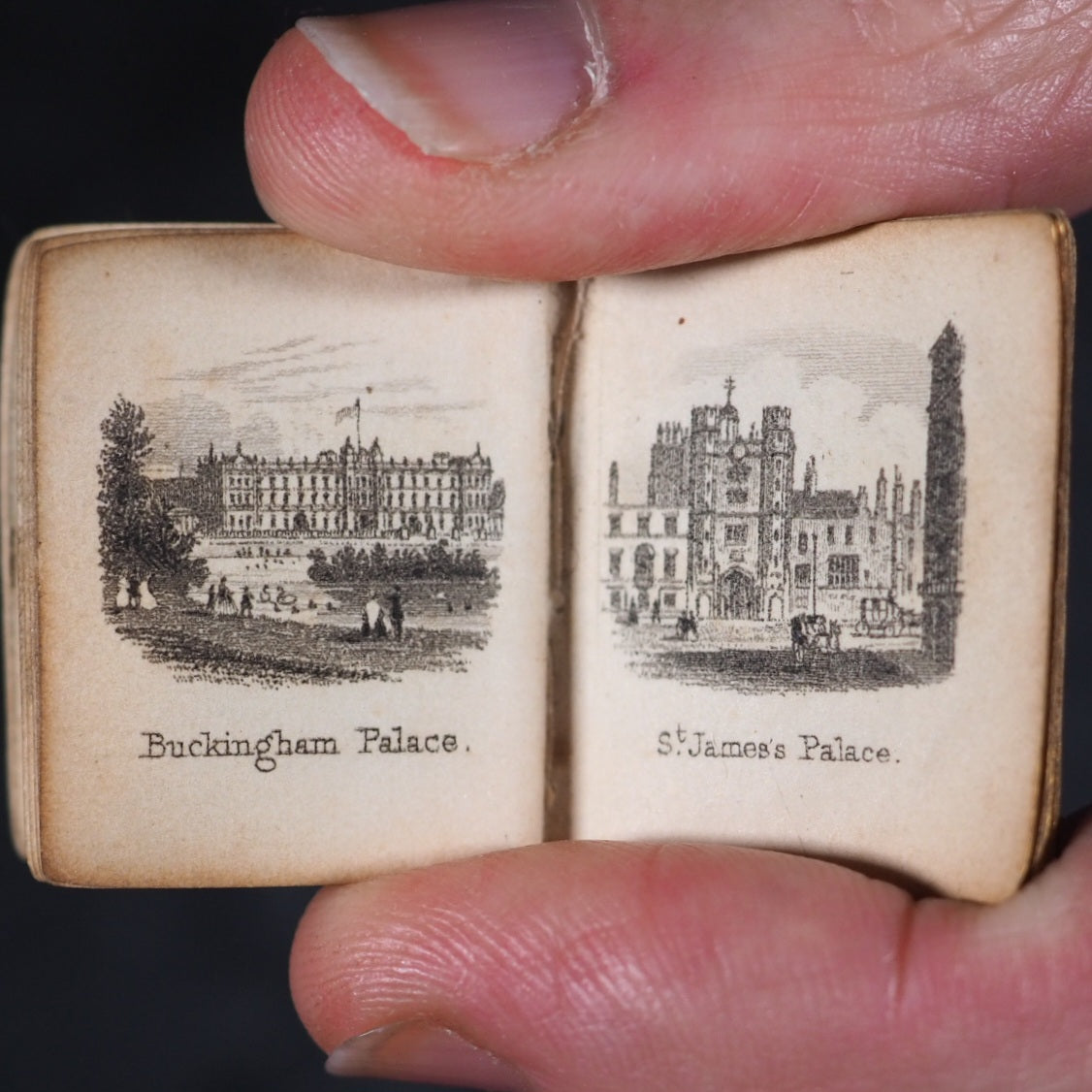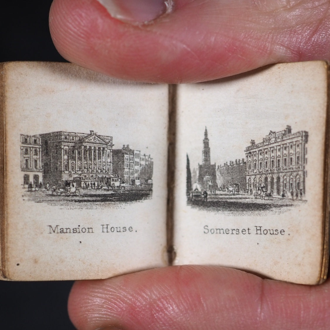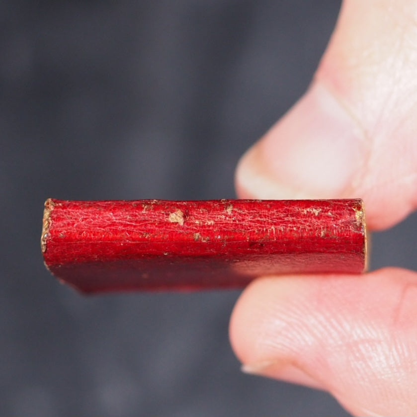 Bijou Picture of London, or the Gems of the Metropolis. Rock, Brothers & Payne. London. No date (but 1850).  Engraved frontispiece, title and 30 plates. Bondy p.152: "... tiny but excellent views of London ..."; Spielmann 58: "[the views] are of exceptional quality considering their tiny size"; All edges gilt. Original pale yellow endpapers. Contemporary signature on title-page and front pastedown endpaper. Provenance: A.C.Owen. 25 x 31 mm. Original dark red cloth gilt. Bondy, 152. Spielmann, 58. Welsh 1282. OCLC, 317824544. WorldCat locates 4 copies worldwide. 180 firsts2024