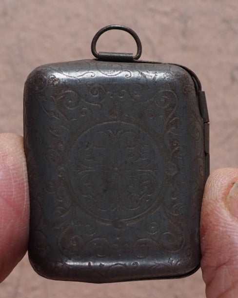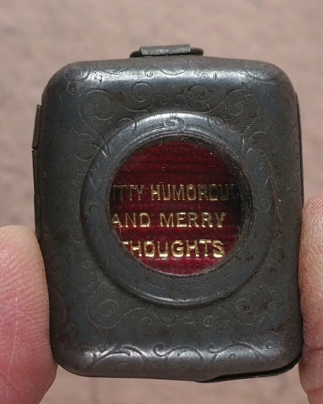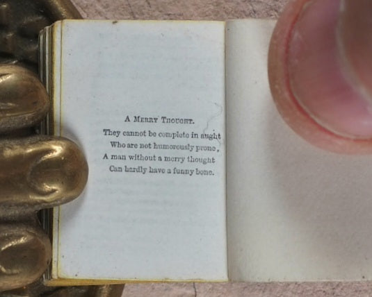 128 printed pages. Printed at the Glasgow University Press. In original metal locket with loop and built-in magnifier.  All edges yellow. original yellow endpapers. 19 x 26 mm. Original red morocco; spine and front cover with gilt titling. Tin showing slight signs of wear to the surface. Volume two in the Midget Series. Bondy, 113. Garbett, 28. Spielmann, 514. Welsh, 4861. OCLC, 794871922. WorldCat locates two copies worldwide (National Library of Scotland, Library of Congress).