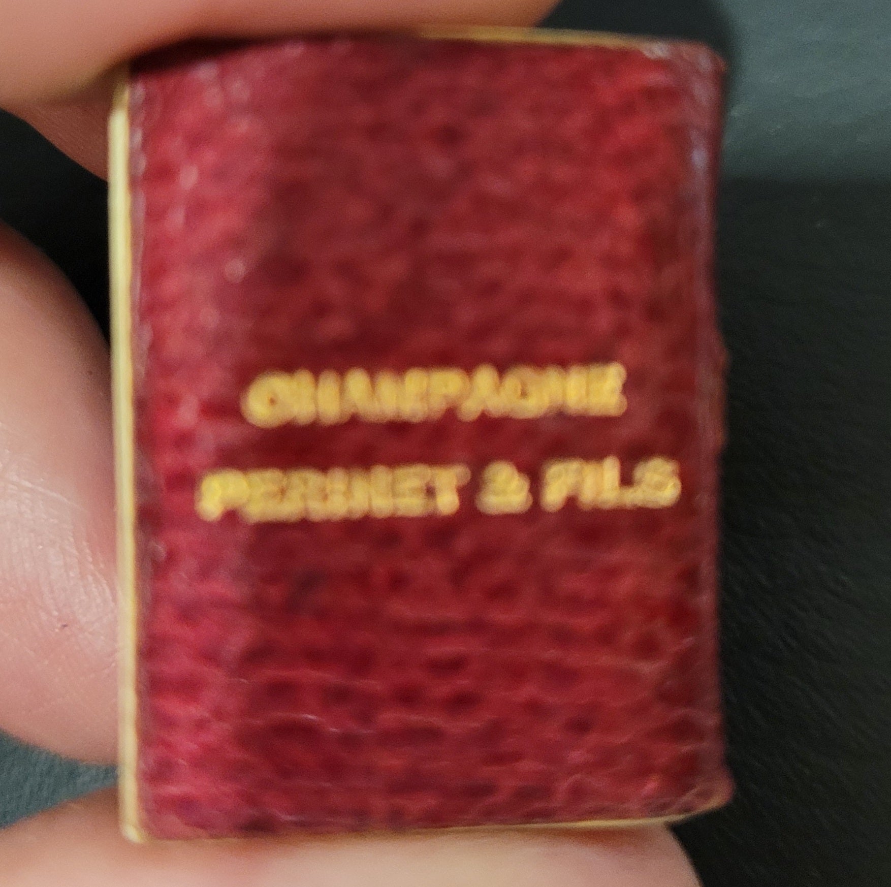 Housed in a hinged, white metal (silver plated) case, with "Smallest English Dictionary with Magnifying Glass" (inset to lid). Engraved on the rear of the case, is a library style globe of the world surrounded by books.
