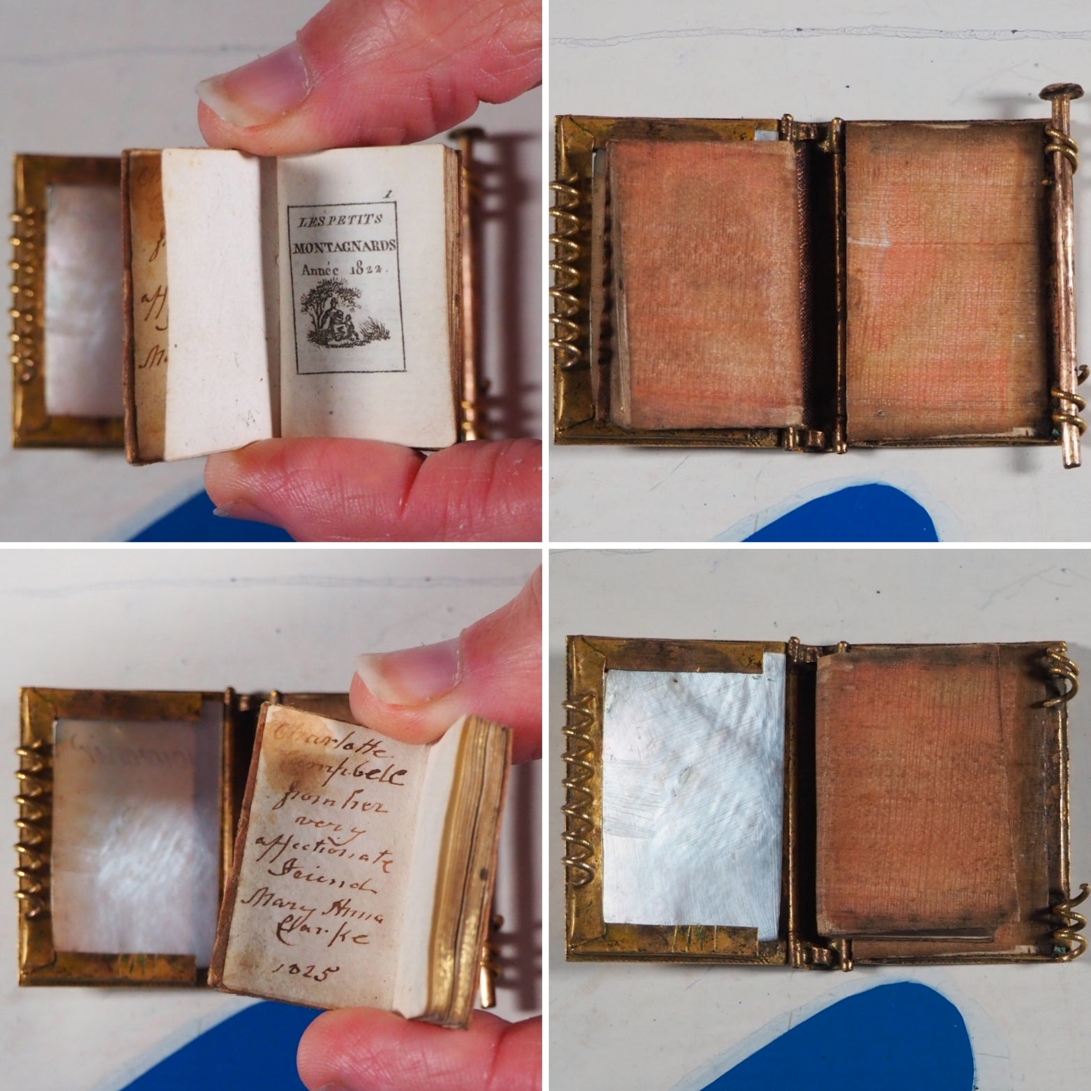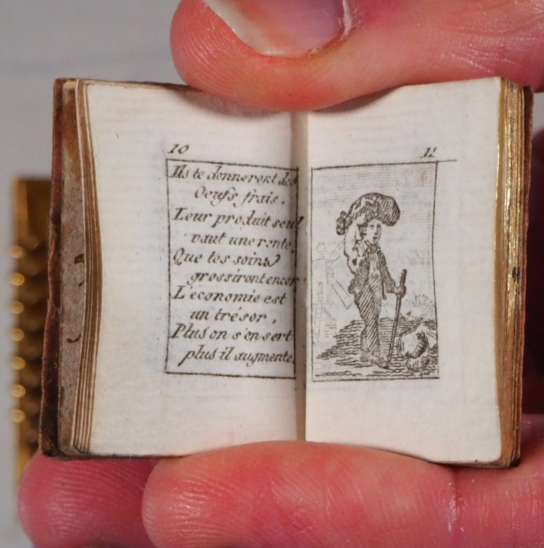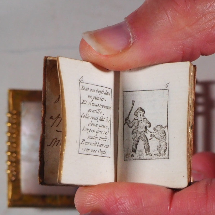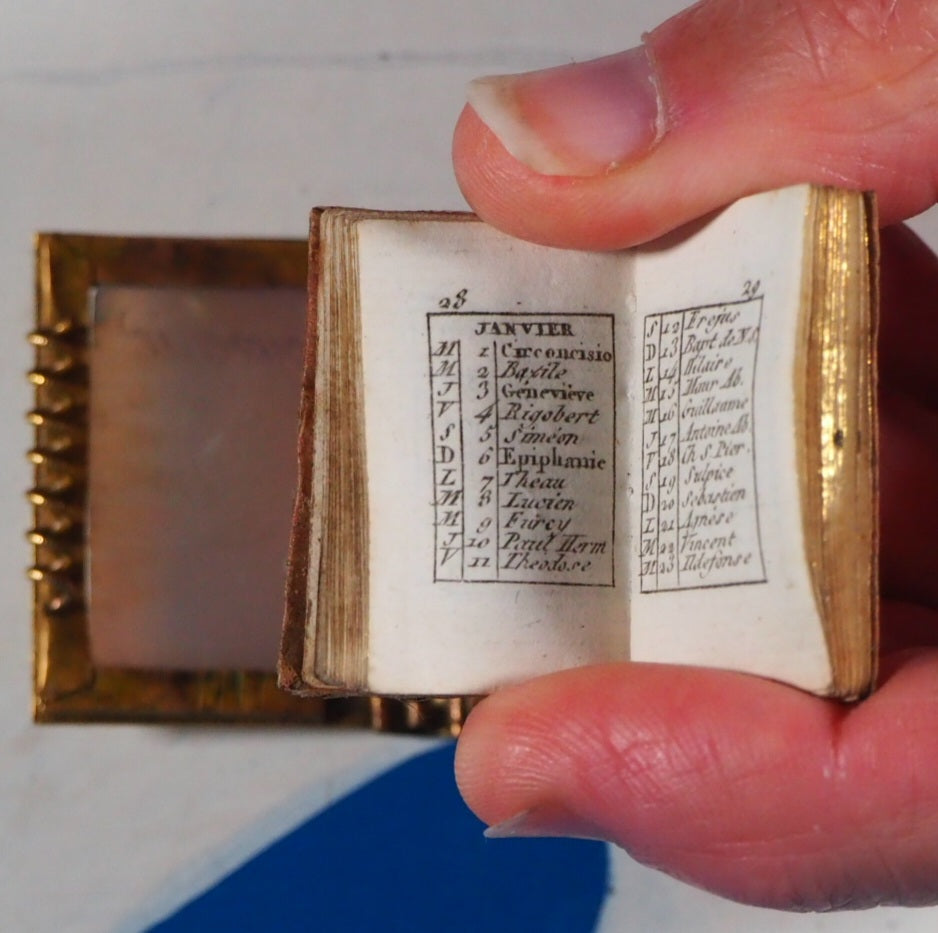 64 printed pages. 8 full page engraved illustrations. Contemporary ink inscription on front paste down endpaper, dated 1825. A few light pencil marks on rear endpapers. 24 x 35 mm. Contemporary peach silk (slightly worn at edges and with handling marks). Complete with original Palais-Royal, Mother of Pearl & Ormolu, gilt bronze cover, "Souvenir" engraved on front panel. Lined with the same peach silk and together with original bronzed lynch-pin (some very slight tarnishing to ormolu). Provenance: "From Charlotte Campbell to her very affectionate friend Mary Anna Clarke". Possibly Lady Charlotte Susan Maria Campbell, Lady-in-waiting to Caroline of Brunswick, Princess of Wales and daughter of the Duke of Argyll. Almanac preceded by song lyrics. Gumuchian, 4132. Grand-Carteret, 1962, notes same title used in 1794. Joffe, 95. Welsh, 5645. Most French Palais-Royal ormolu mounted mother of pearl survivors are notebooks. Miniature almanacs with these bindings are rare and highly prized. Seller Inventory # 5222