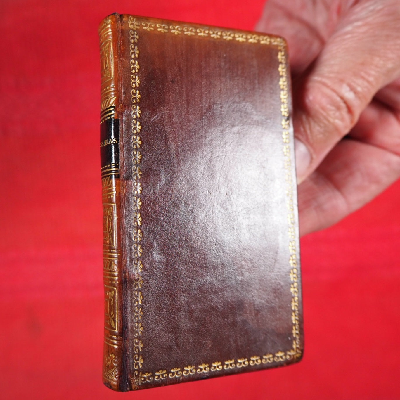 160 printed pages, engraved frontispeice, engraved additional title-page. 160 printed pages. Engraved title page and portrait frontispiece (slight foxing). Ex libris of Edwards Dyson on front paste-down endpaper with his neat ink signature above. Provenance: Edwards Dyson [1810-1886] Son of John Dyson. Born at Willow Hall, Halifax. On the front free endpaper is a later pencil inscription, dated 1901, exclaiming "a sixpenny find!". University edition of Jones's Diamond Classics. Printed by Andrew & John M. Duncan, Printers to Glasgow University. 55 x 95mm. Contemporary brown calf; spine in compartments with hand-tooled gilt mitred and cornered panelling and black calf titling piece with gilt lettering with double gilt ruled and broken-line horizontal rules. Covers with scrolling festooned borders in gilt (slightly rubbed at edges and corners). Bondy, 84-6. Spielmann, 270. Welsh, 4069. OCLC, 1085373484 . WorldCat locates 6 copies worldwide. Seller Inventory # 5424