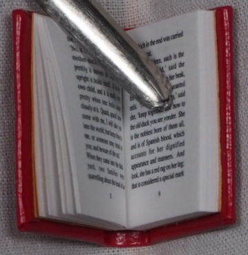 Micro-Miniature Book. 64mo. 39 printed pages. 18 x 23.5 mm. CrimsonNovalite Leather Boards, Gilt stamped title on cover. As New. Original packaging.