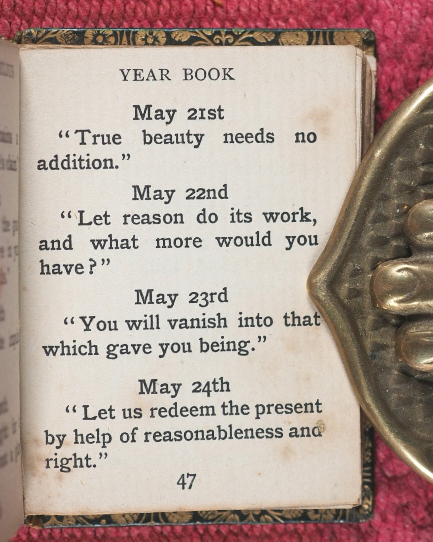 ![Load image into Gallery viewer, Marcus Aurelius Yearbook: compiled from the writings of Marcus Aurelius. Joan Barrett (Compiler). Treherne, Anthony. [London]. H.B. Claflin Co. New York. (1905.](http://www.miniaturebooks.co.uk/cdn/shop/files/P6025088_110x110@2x.jpg?v=1748879890)