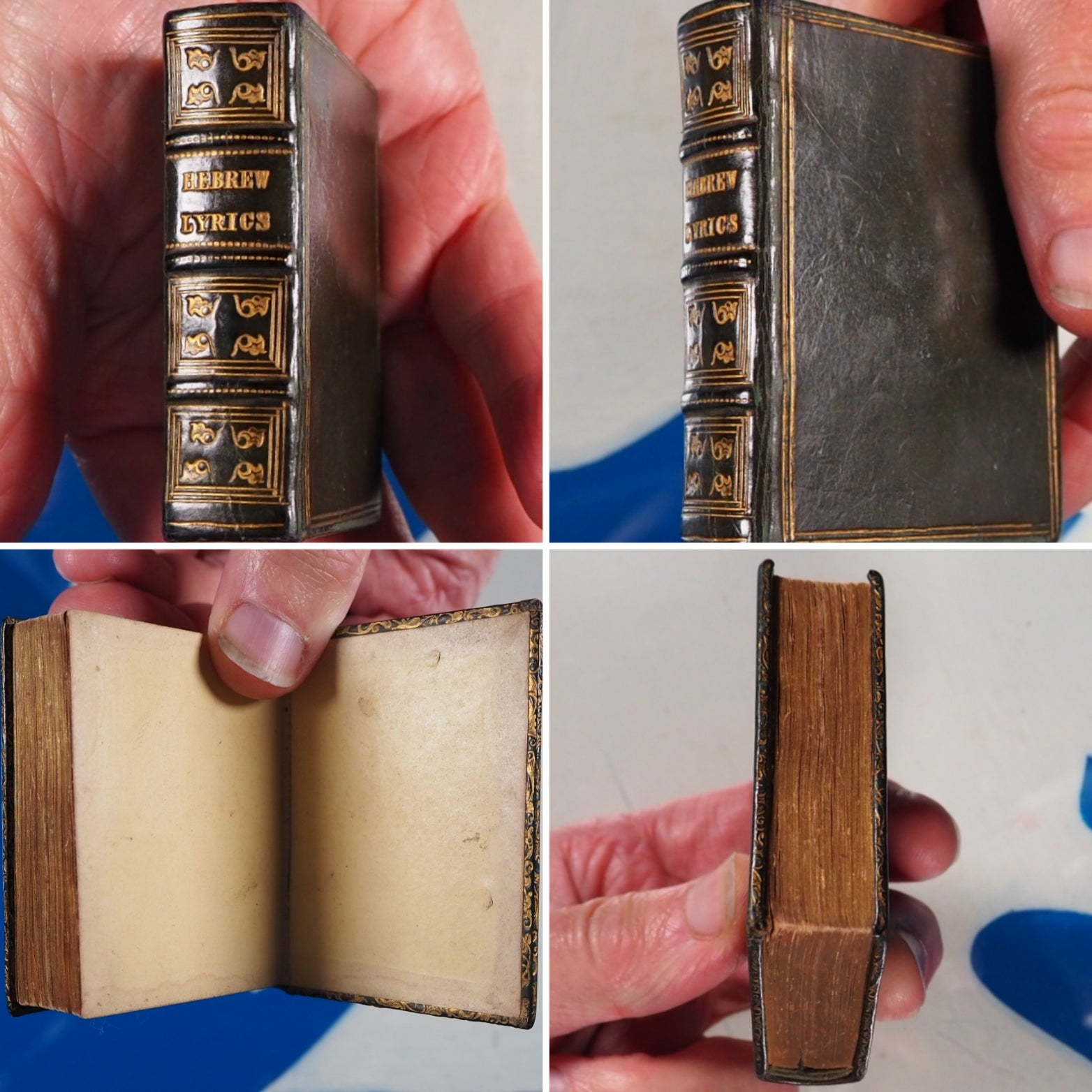 [2], 252 printed pages. All edges gilt. Inner gilt dentelles. Silk place-marker. Lacks half-title "Hebrew lyrics" and front free endpaper. Various ink ownership inscriptions on front paste-down endpaper. Printed by R. Clay in 5-point. 57 x 72 mm. Contemporary green calf (very lightly rubbed); spine with three raised bands and compartments with gilt floral cornerpieces within triple gilt fillet borders and pointille horizontal rules around gilt titling. Poems include works by C.Wesley, Mrs.Hemans, H.Rogers, Jane Taylor, Hogg, Moore, J.Montgomery, Mrs.Barbauld, Doddridge, Ragg, Edmeston, Tappan, Miss Jewsbury et al. Bondy, 128. Spielmann, 194. Welsh, 3270. WorldCat locates nine copies in institutional libraries. A fine green calf binding. Seller Inventory # 5250