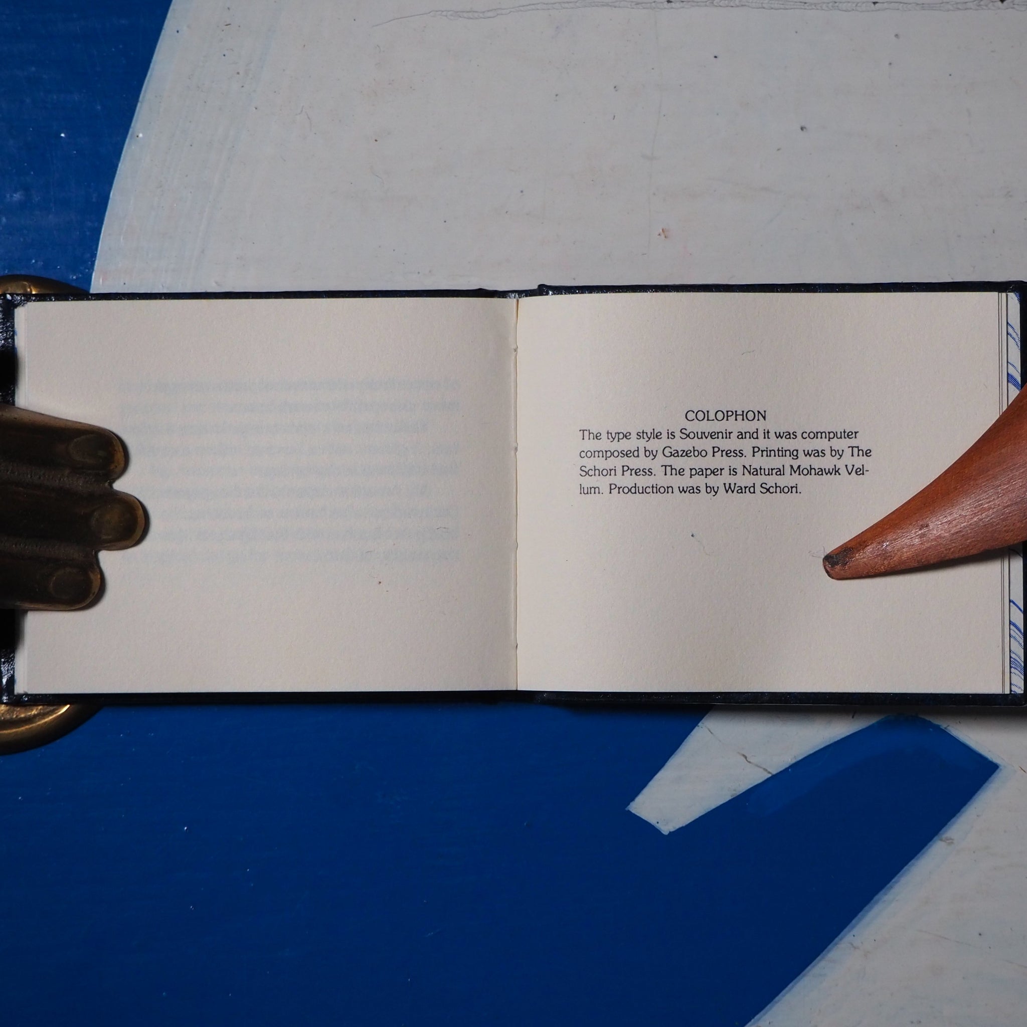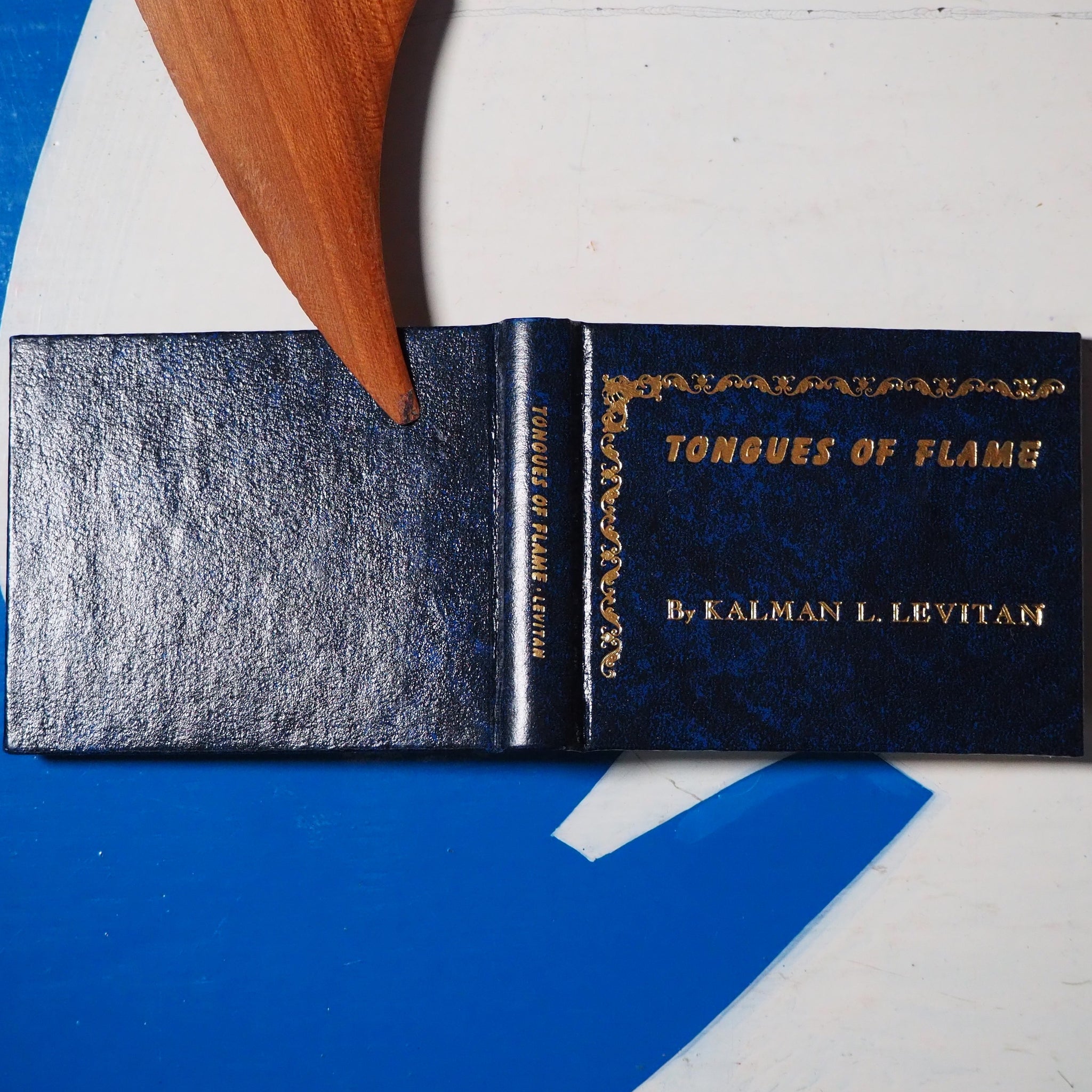 miniature book (5.3 x 6.7 cm.). blue paper covered boards stamped in gilt, top edge gilt. (66) pages. (Bradbury, Kaycee 3). No limitation given but Bradbury states 200 copies. Printed by Ward Schori with "gilt cloth boards by Hugo Grummich" - Bradbury. . Humorous and sensitive poetry to the memory of his mother by one of the founders of the Miniature Book Society. Levitan was elected as the first President of what became the Miniature Book Society. Kalman Levitan, rabbi, was a chaplain in the US Air Force, who also wrote and spoke extensively about miniature books. He wrote a reference book entitled "A Collection of References Pertaining to Miniature Books" published by Kaycee Press in 1985. This work drew upon Levitan's extensive personal collection of such material.