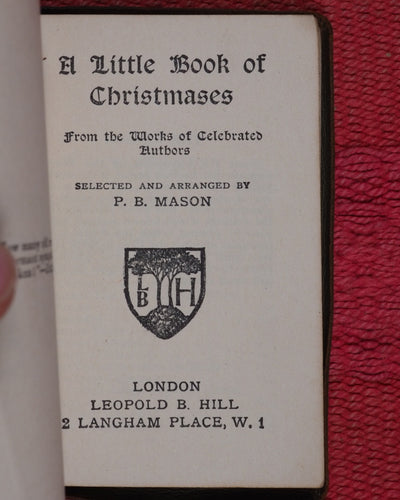Mason, P.B. , selected and arranged by. Little Book of Christmases. From the works of celebrated authors. Hill, Leopold B. 2, Langham place W.1. London. [1920].