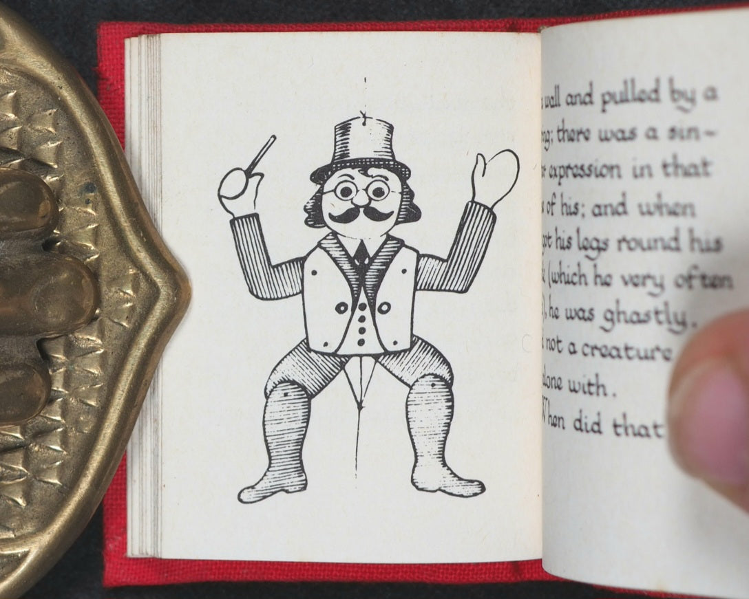 [46] pages. 12 vignette line illustrations. Abridged from 'Household Words' (1850). Gordon Murray (1921 - 2016) was the Author, Illustrator, Calligrapher, Book designer, and Publisher of Silver Thimble books. After his career as a producer and puppeteer for popular children's television programs like Camberwick Green and Trumpton, Murray turned to producing miniature books under the Silver Thimble imprint. He performed all aspects of the bookmaking process himself, founded and ran Silver Thimble Books, working from his home in Bexhill-On-Sea, England. He illustrated the books, often using his own hand-colored illustrations and watercolors.He inscribed the text with his own calligraphy and designed the overall look of the miniature books. He bound the books by hand. These miniature books are now considered collectors' items and they include: